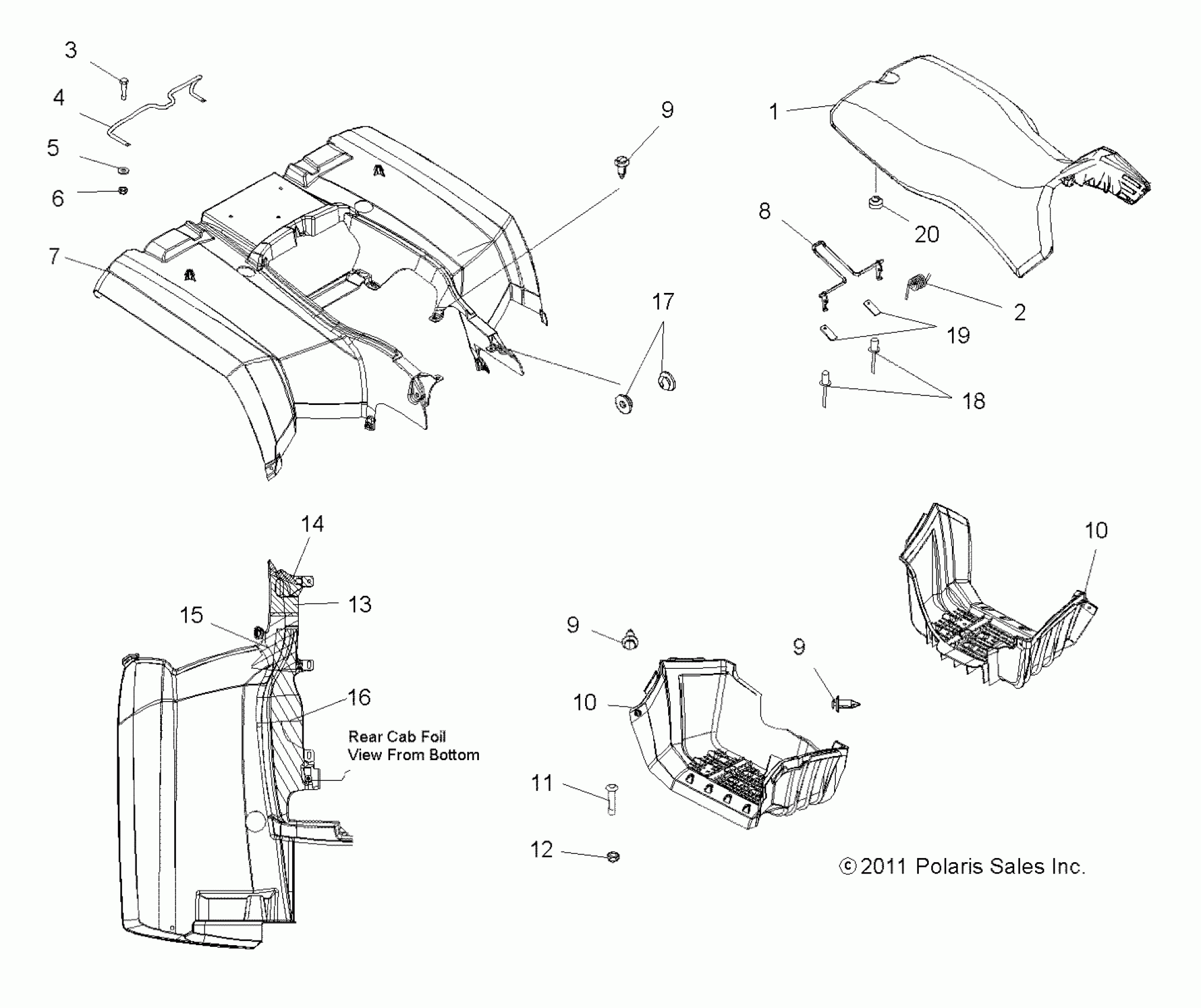 Polaris SPORTSMAN 800 EFI - A13MH76AD/AX/AZ BODY, REAR CAB, SEAT and FOOTWELLS - A13MH76AD/AX/AZ (49ATVCABRR13SP800) Diagram
