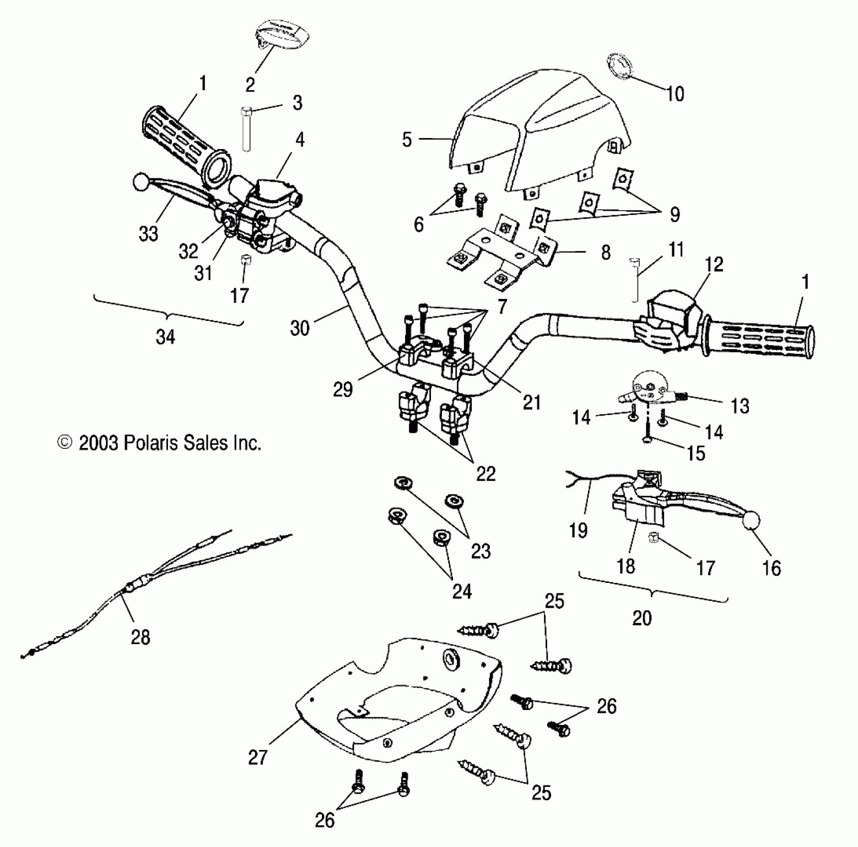 Polaris SPORTSMAN 90 - A04FA09CA HANDLEBAR - A04FA09CA/CB (4987808780B11) Diagram