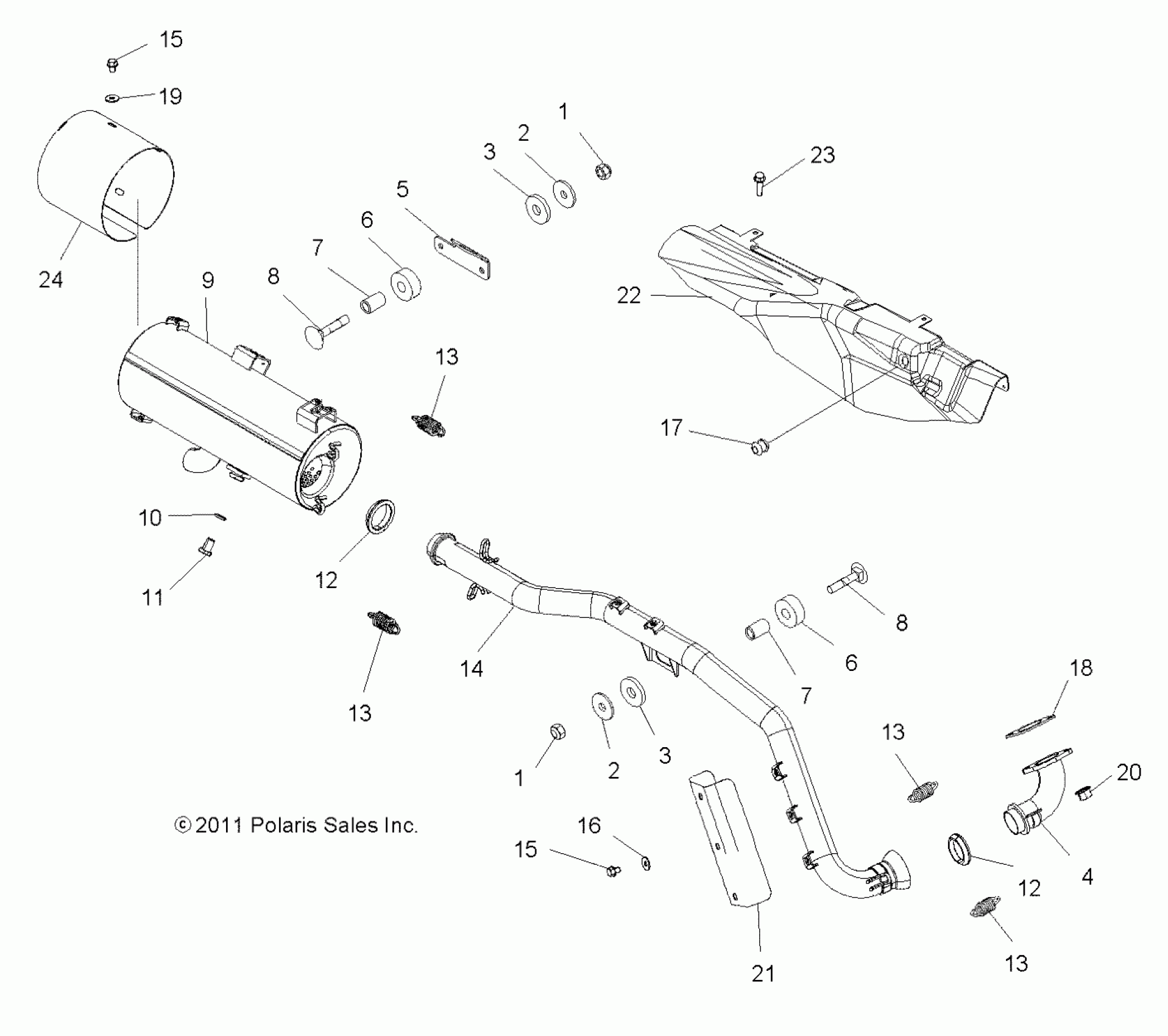 Polaris SPORTSMAN FOREST TRACTOR 500 - A12MN50ET/EX ENGINE, EXHAUST - A12MN50ET/EX (49ATVEXHAUST12SP500TR) Diagram