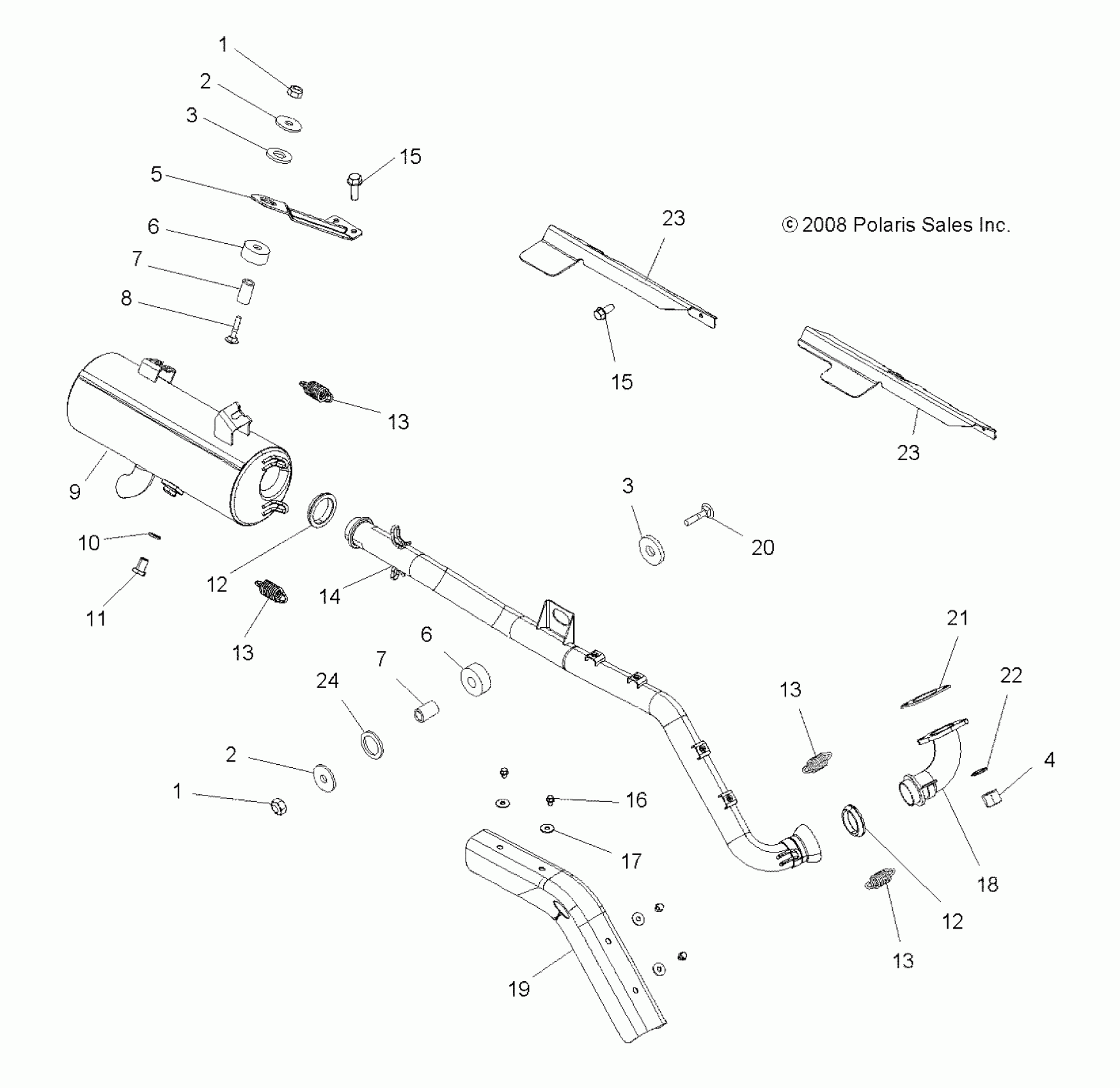 Polaris SPORTSMAN TOURING 500 EFI - A08DN50AF/AS/AW/AZ ENGINE, EXHAUST - A08DN50AF/AS/AW/AZ (49ATVEXHAUST08SPTRG500) Diagram