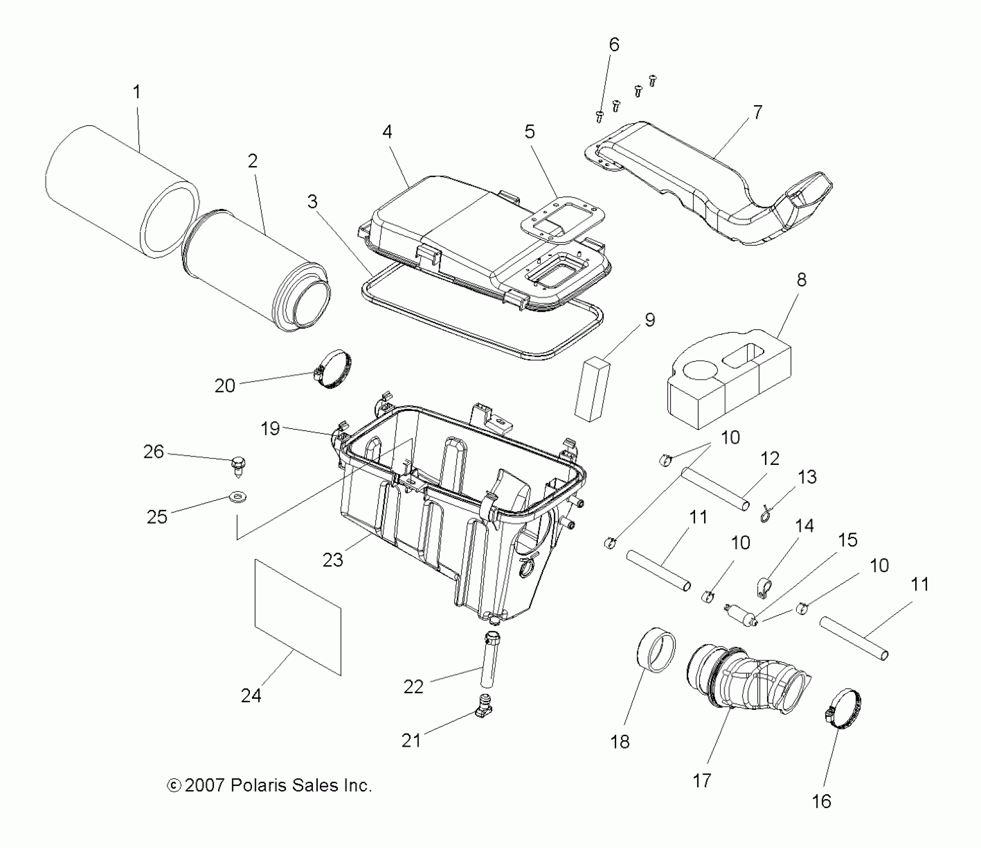 Polaris SPORTSMAN TOURING 500 EFI - A09DN50AB/AZ ENGINE, AIR INTAKE SYSTEM - A09DN50AB/AZ (49ATVAIRBOX08SPX25) Diagram