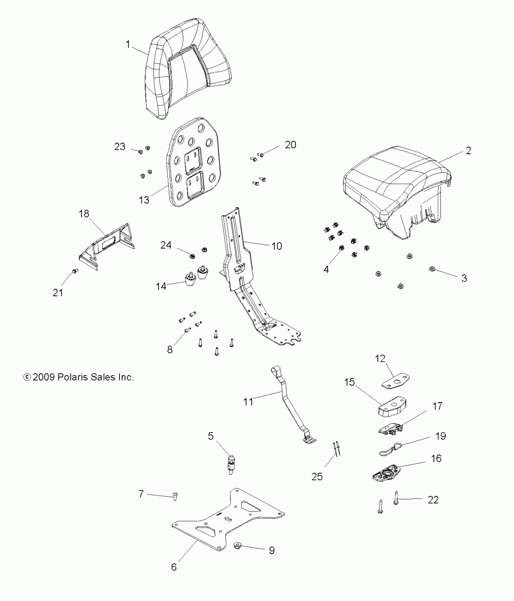 Polaris SPORTSMAN TOURING 500 HO - A13DH50AX/AZ BODY, PASSENGER SEAT BOTTOM and SEAT BACK - A13DH50AX/AZ (49ATVSEATBOTTOM10SP500TRG) Diagram