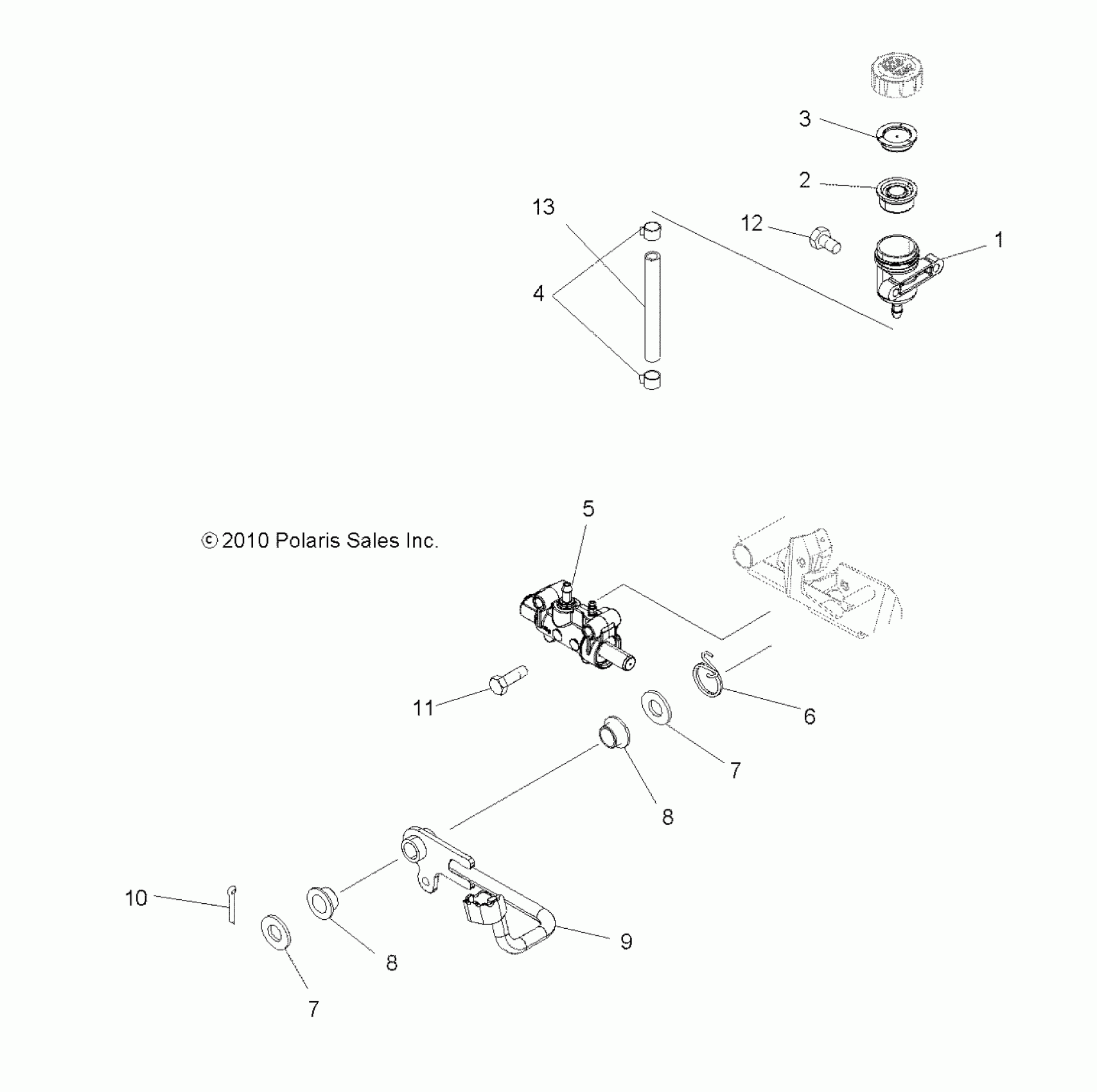 Polaris SPORTSMAN TOURING 500 HO - A13DH50AX/AZ BRAKES, PEDAL and REAR MASTER CYLINDER - A13DH50AX/AZ (49ATVBRAKERR11SP500TRG) Diagram