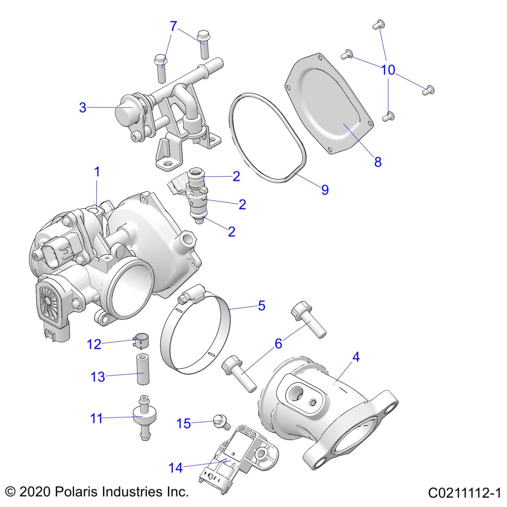 Polaris SPORTSMAN TOURING 570 EPS (R02) - A21SDE57A4/B4 ENGINE, THROTTLE BODY and FUEL RAIL - A21SDE57A4 (C0211112-1) Diagram