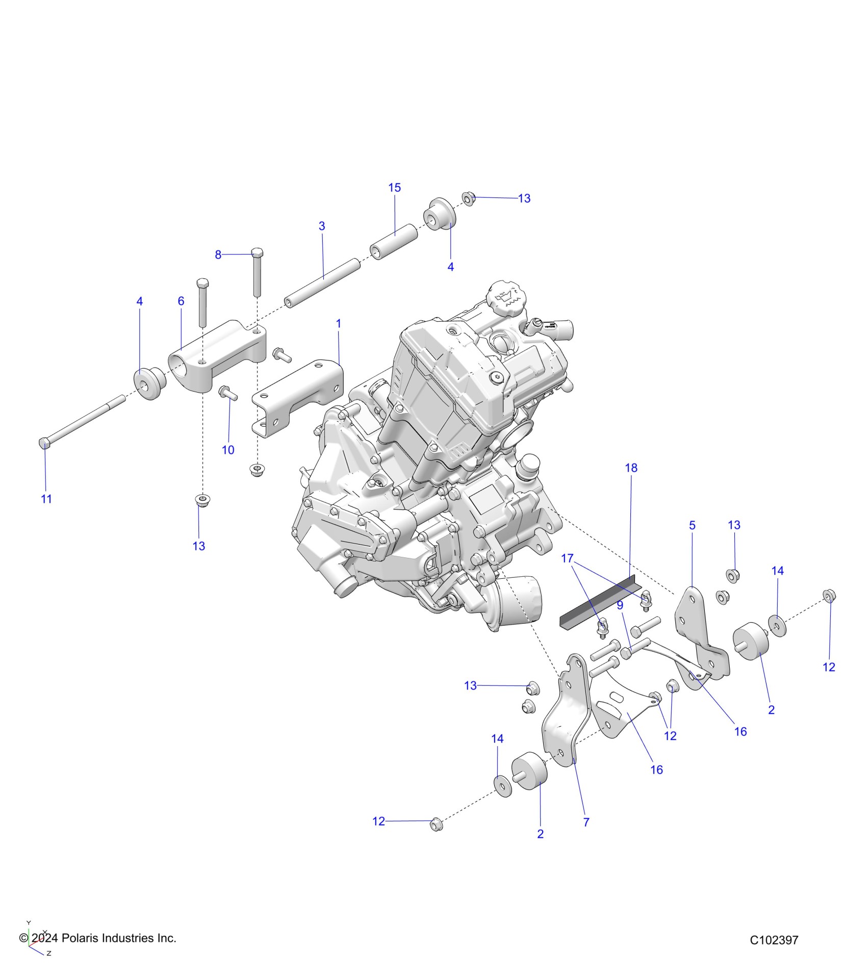 Polaris SPORTSMAN TOURING 570 X2 EPS (R04) - A25SWE57AL ENGINE, MOUNTING & LONG BLOCK - A25SWE57AL (C102397) Diagram