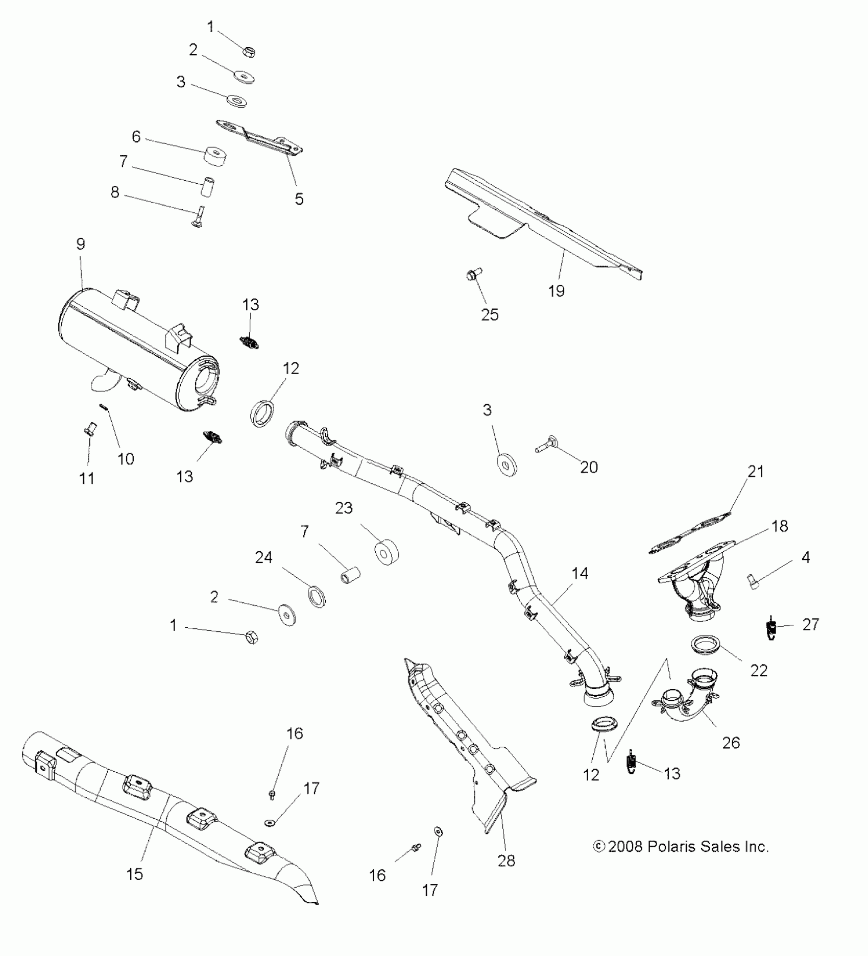 Polaris SPORTSMAN TOURING 800 EFI - A09DN76AB/AL/AY ENGINE, EXHAUST - A09DN76AB/AL/AY (49ATVEXHAUST09SPTRG800) Diagram