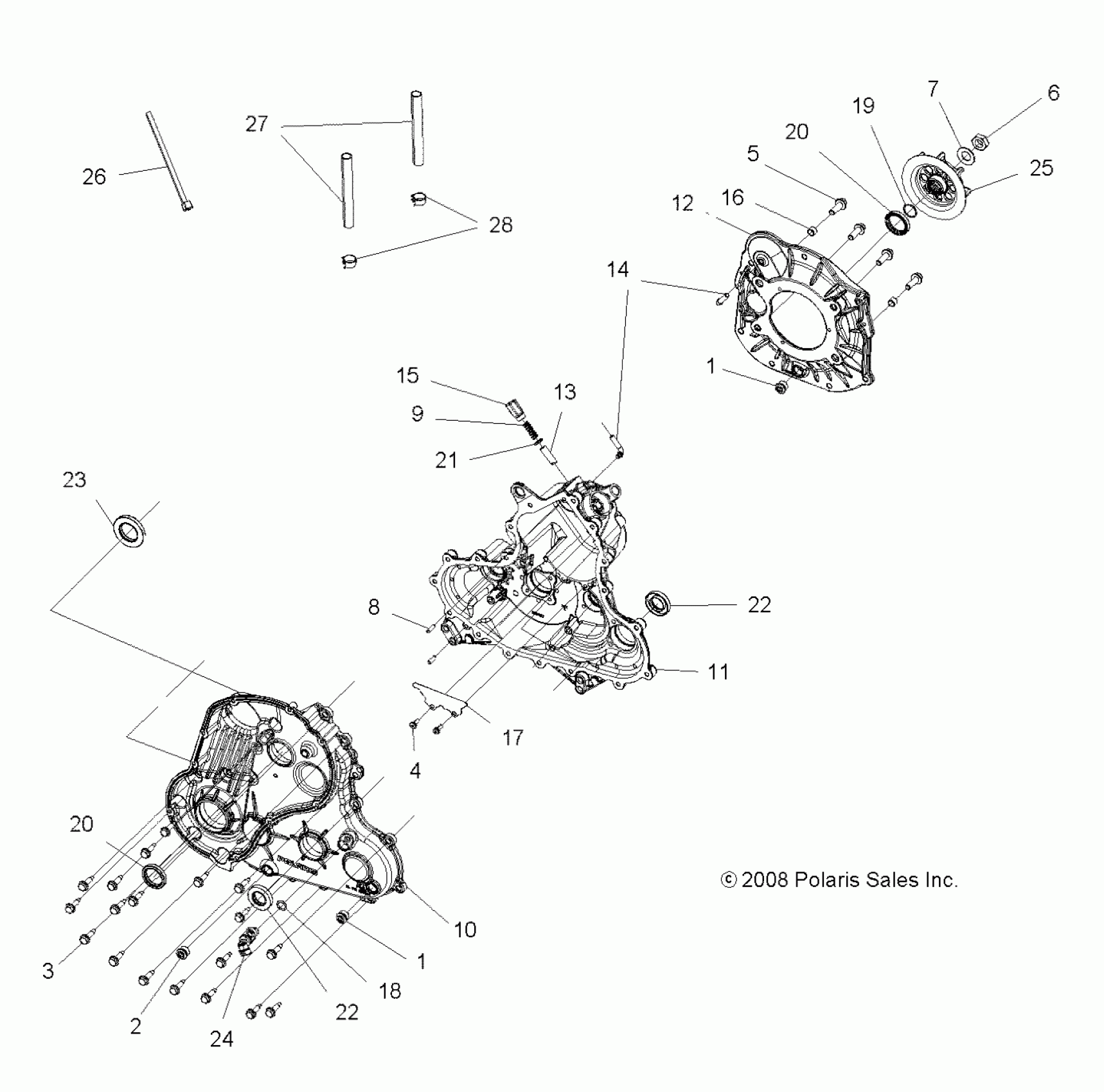 Polaris SPORTSMAN TOURING EPS 550 - A10DX55AL/AF DRIVE TRAIN, MAIN GEARCASE - A10DX55AL/AF (49ATVGEARCASE09SPXP550) Diagram
