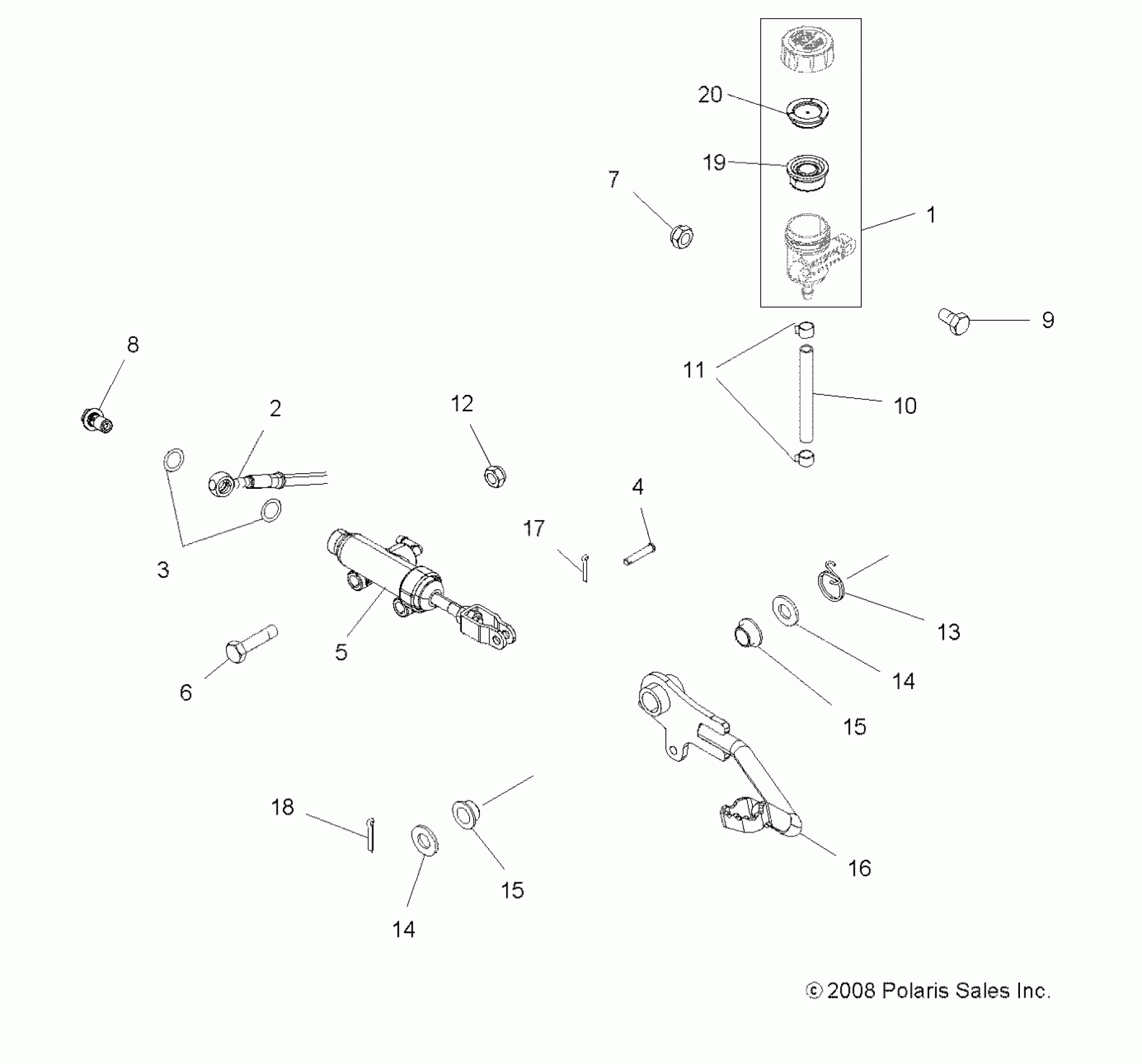 Polaris SPORTSMAN X2 500 EFI QUAD - A09TN50EA BRAKES, FOOT PEDAL and MASTER CYLINDER - A09TN50EA (49ATVBRAKEFOOT09SP500TRGQD) Diagram