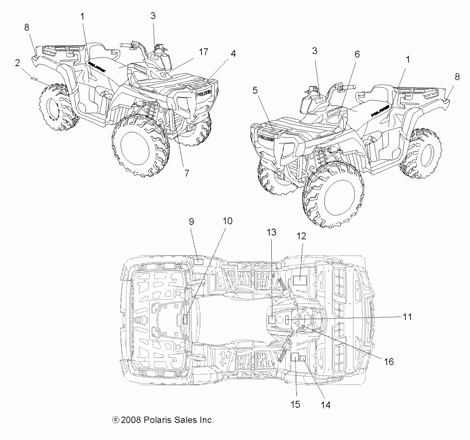Polaris SPORTSMAN X2 800 EFI LE - A08TN76AA/AQ BODY, DECALS - A08TN76AA/AQ (49ATVDECAL08SPX28) Diagram