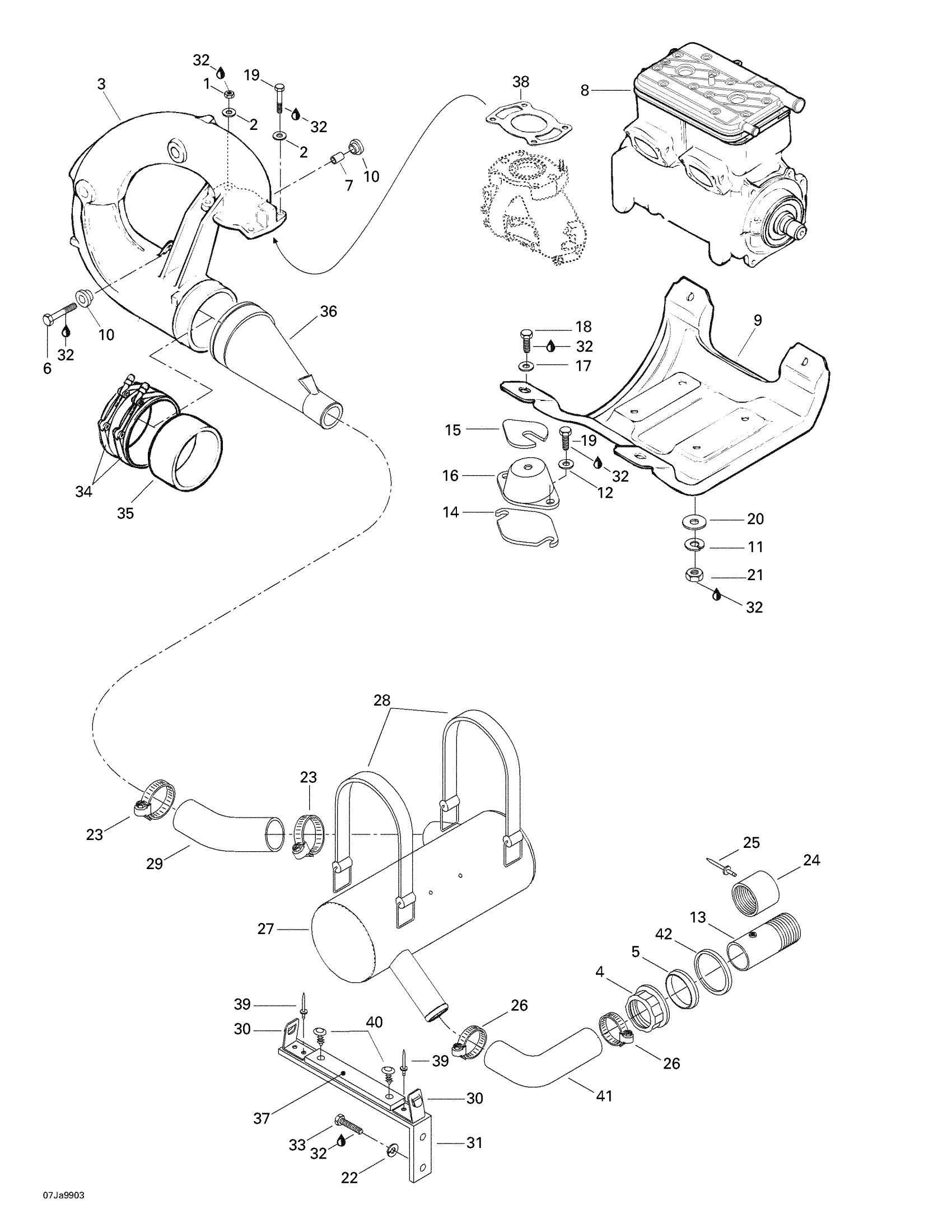 Sea-doo Sportster 1800, 5676/5680, 1999 Engine Support And Muffler Diagram