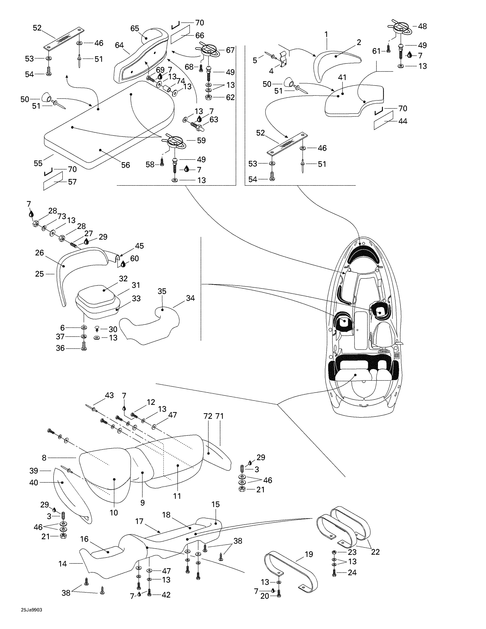 Sea-doo Sportster 1800, 5676/5680, 1999 Seat Diagram