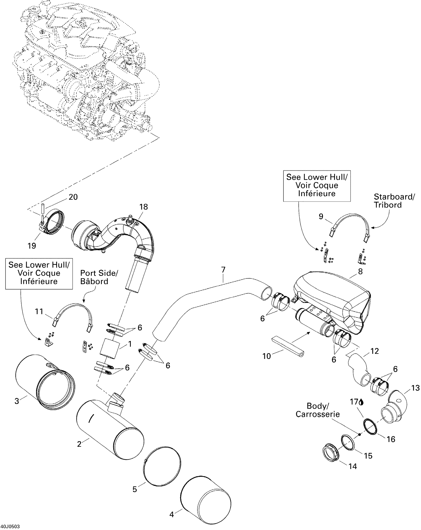 Sea-doo Sportster 4-TEC SCIC, 2005 Exhaust System Diagram