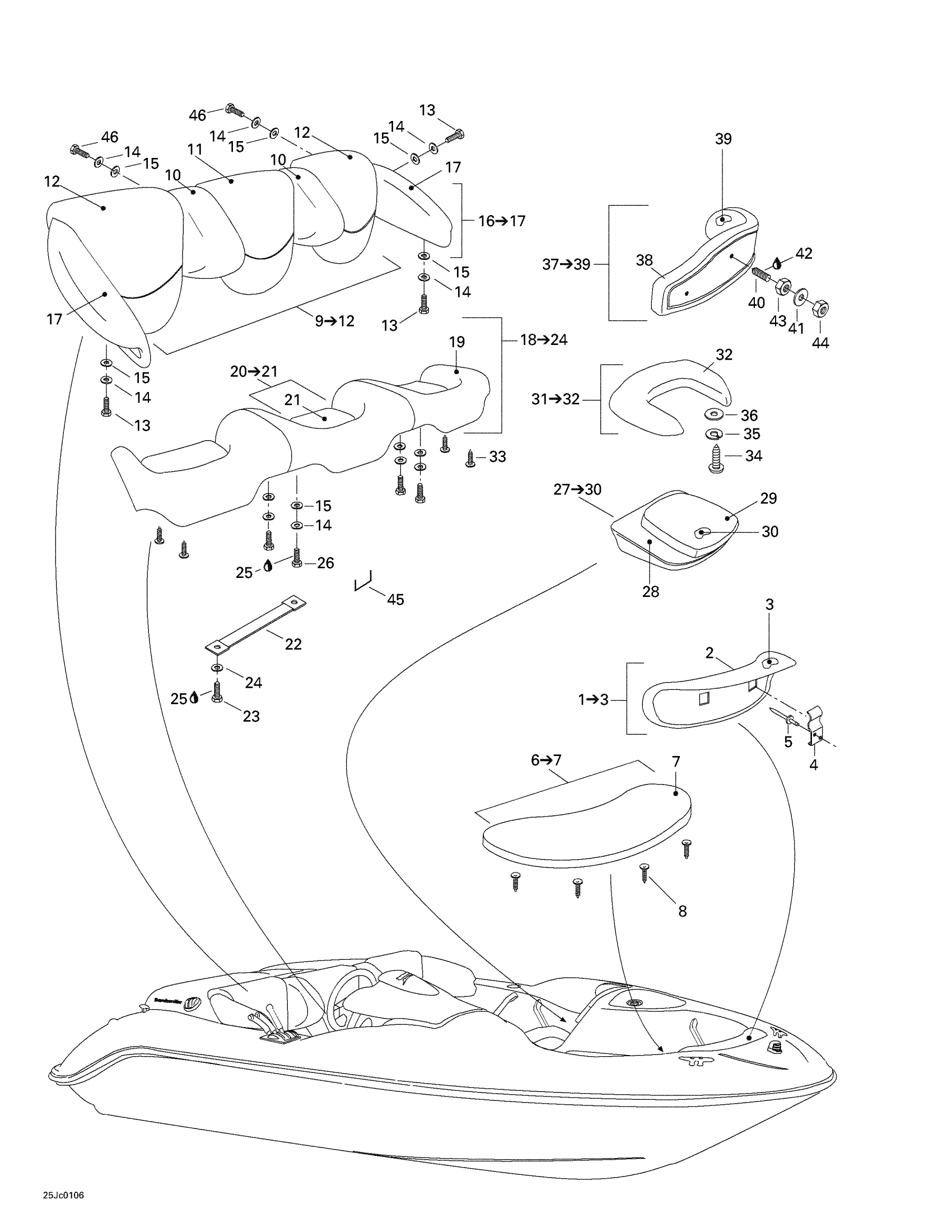 Sea-doo Sportster LE, 5440, 2001 Seats Diagram