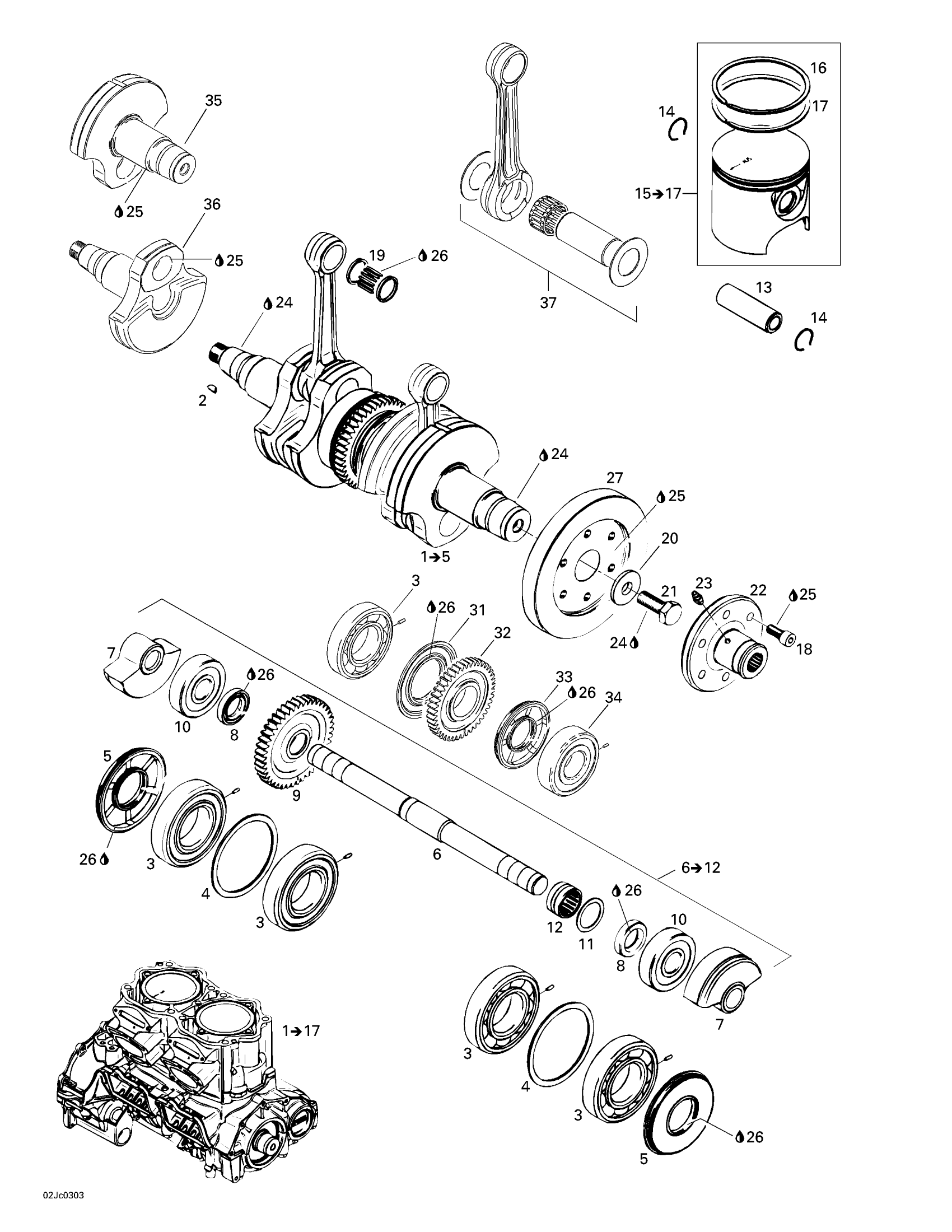 Sea-doo Sportster LE, 5769, 2003 Crankshaft And Pistons Diagram