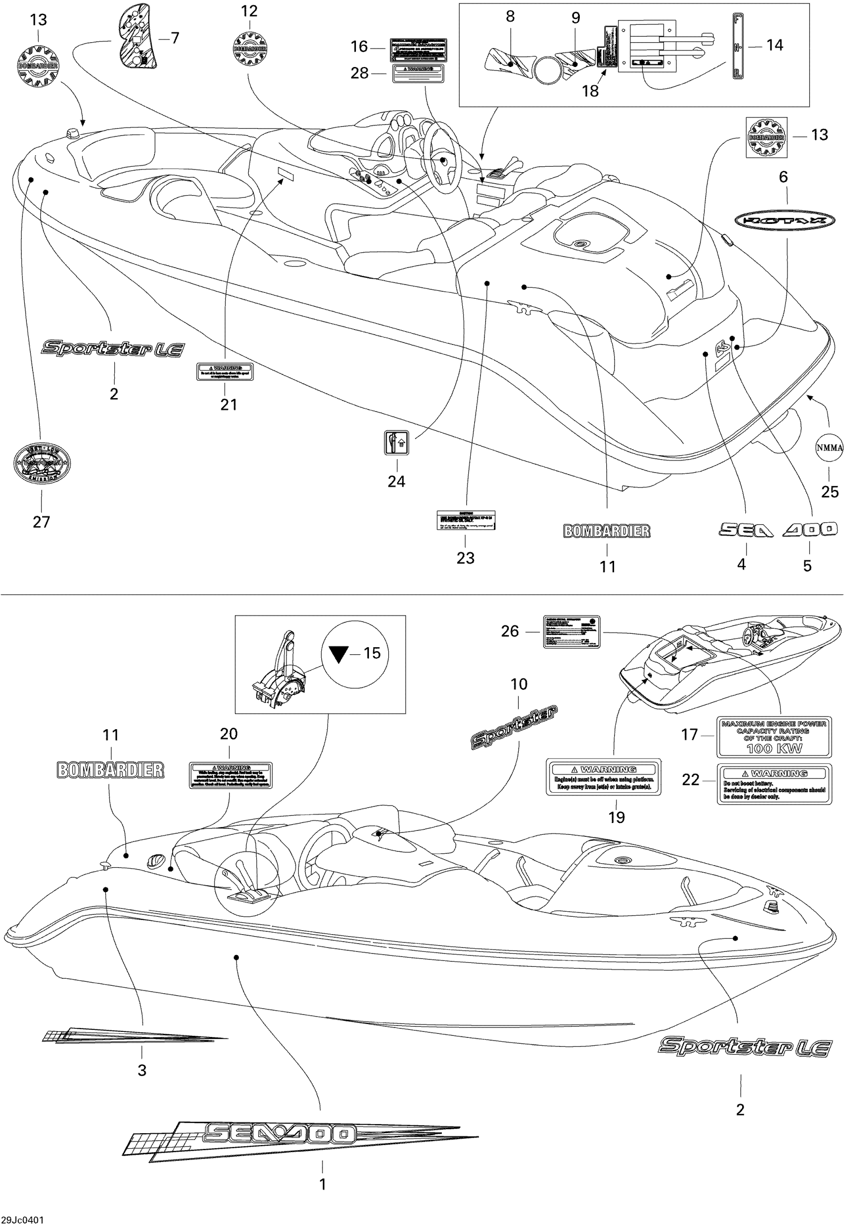 Sea-doo Sportster LE DI, 2004 09- Decals Diagram