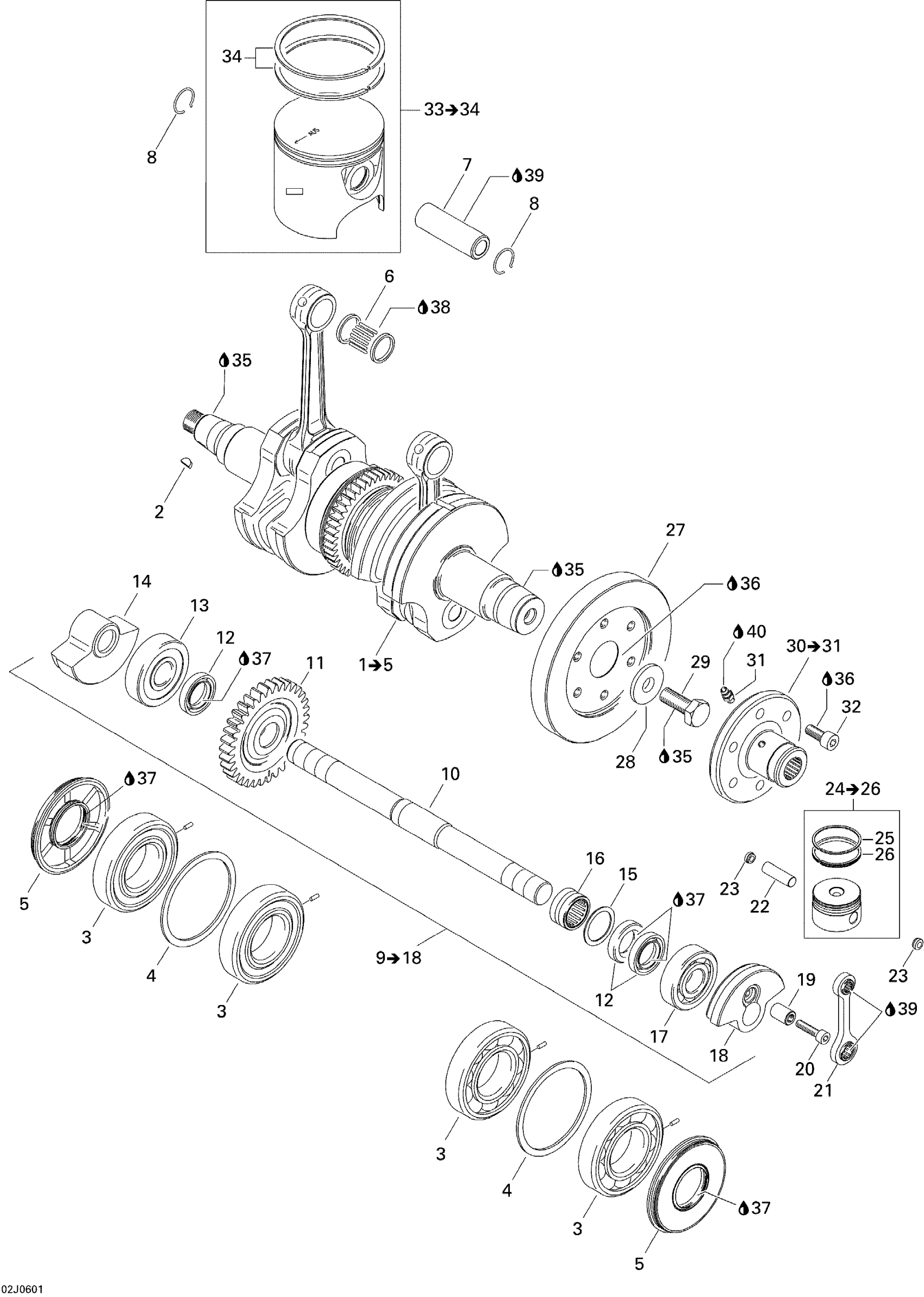Sea-doo Sportster LE DI, 2006 01- Crankshaft And Pistons Diagram