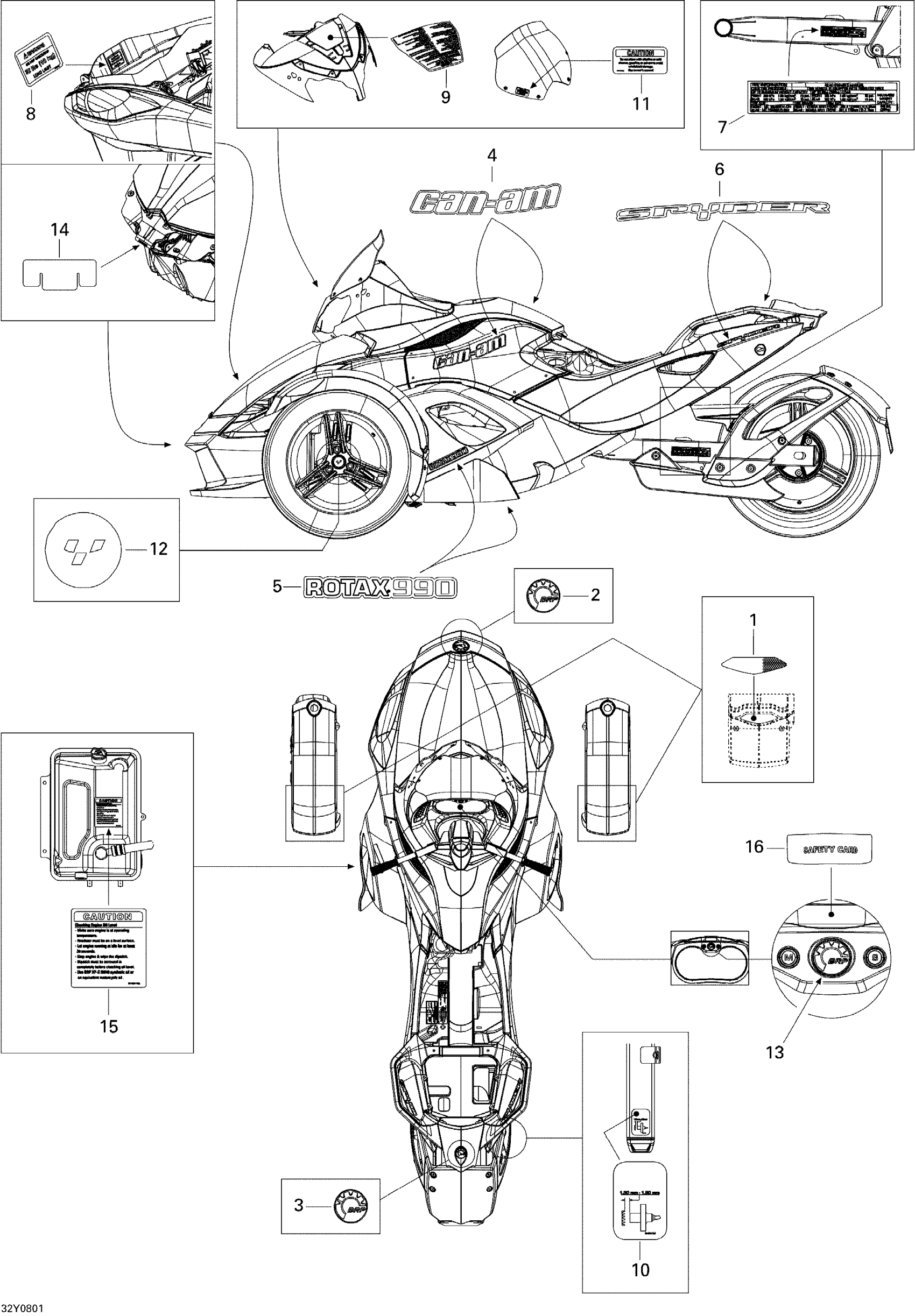 Can-Am Spyder GS 990 5-Speed, 2008 Decals Diagram