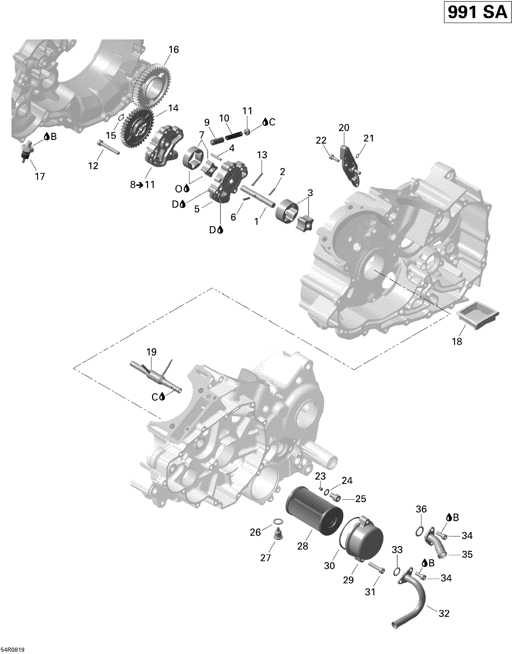Can-Am Spyder GS 990 Semi-Automatic, 2008 Engine Lubrication Diagram