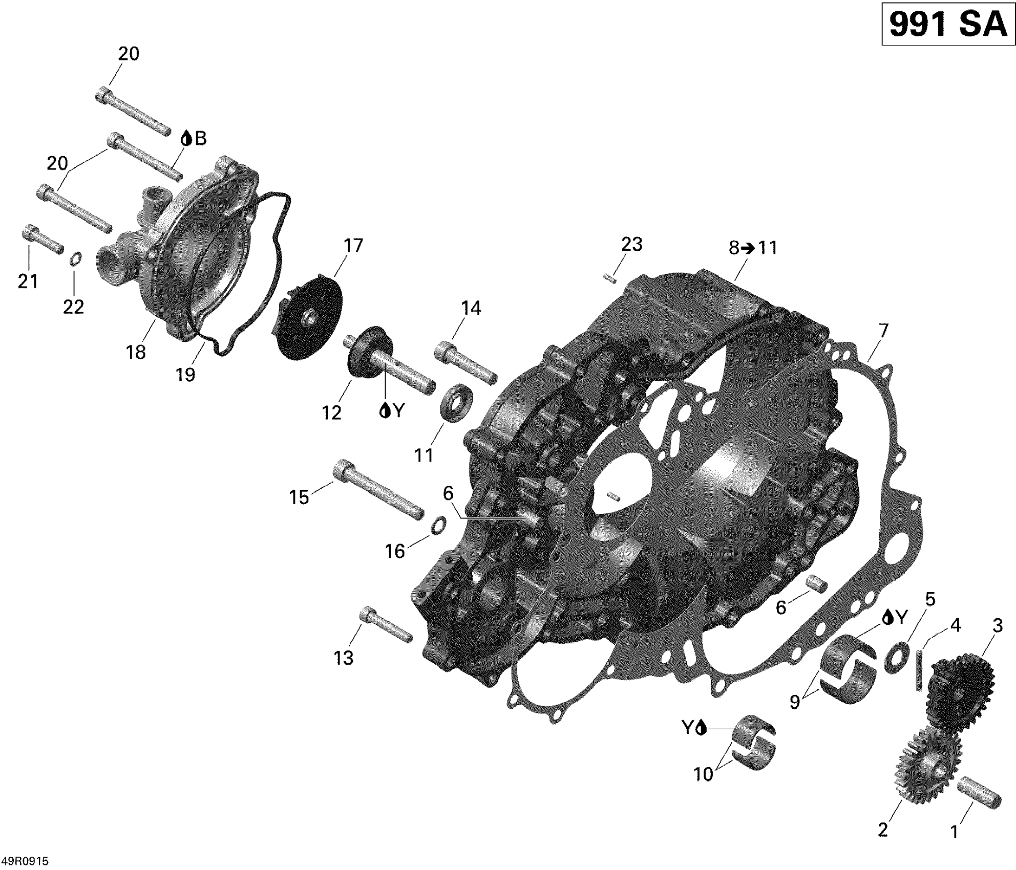 Can-Am Spyder GS Roadster with SE5 transmission, 2009 Clutch Cover And Water Pump Diagram