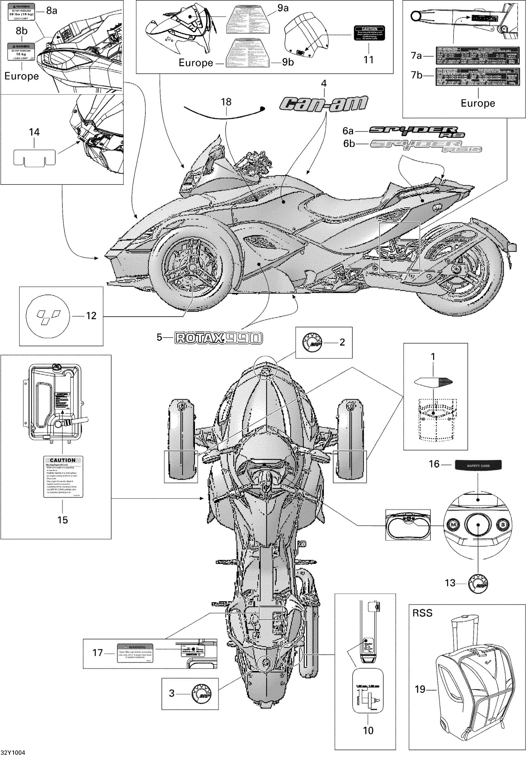 Can-Am Spyder RS Roadster SE5, 2010 Decals Diagram