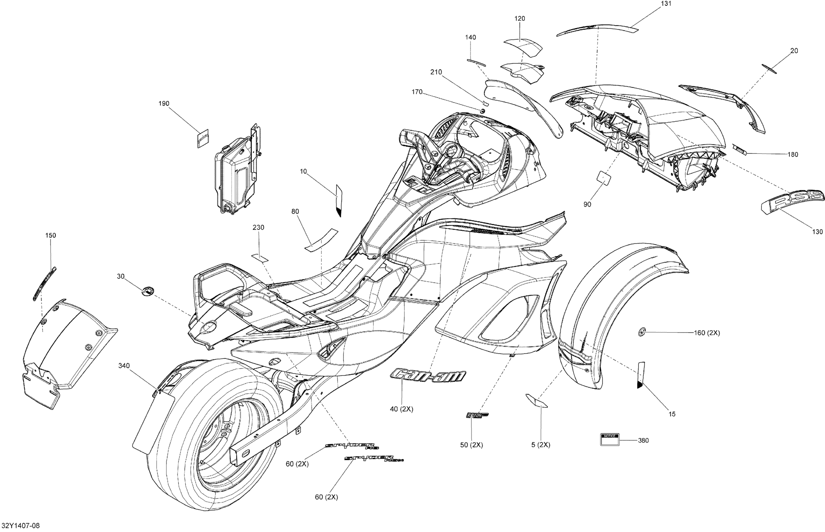 Can-Am Spyder RS SE5, 2014 Decals _32Y1407 Diagram