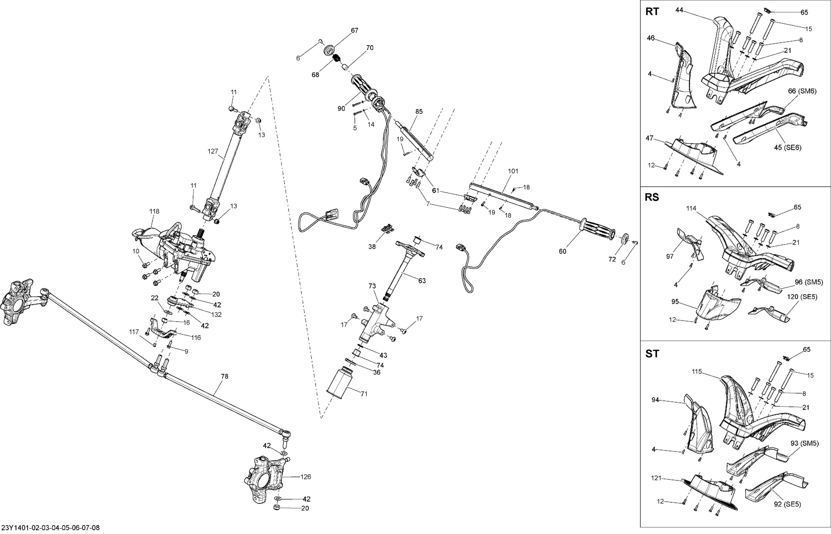 Can-Am Spyder RT SE6, 2014 Steering _23Y1401 Diagram