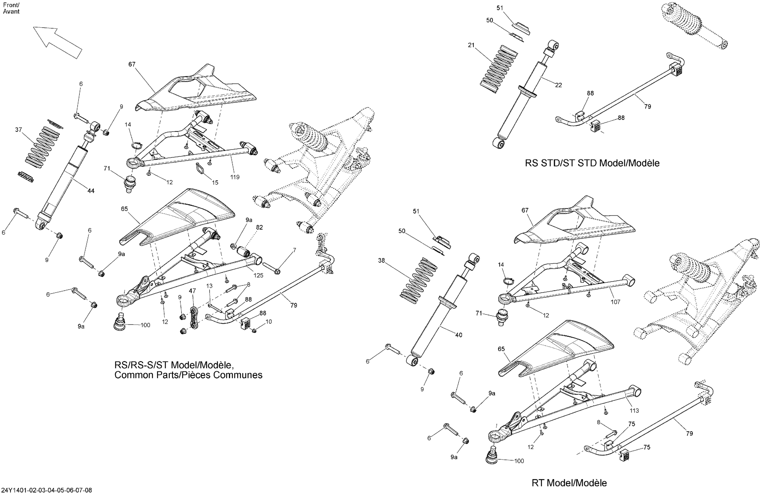 Can-Am Spyder RT SE6, 2014 Suspension, Front _24Y1401 Diagram