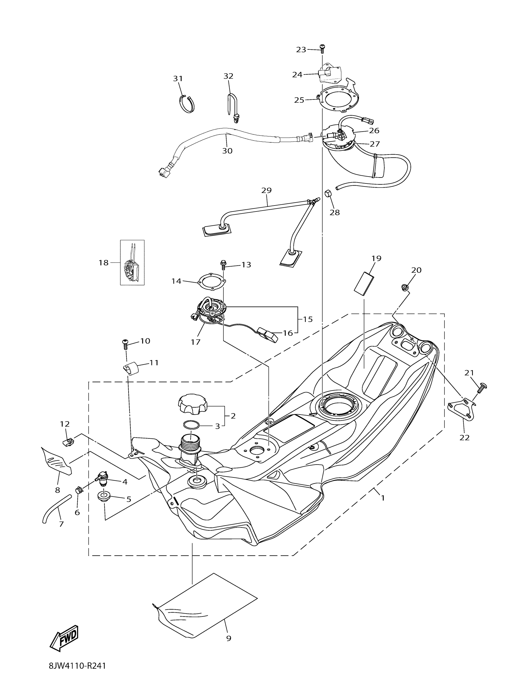 Yamaha SR10MS62GR (SRVIPER M TX 162 SE) 8KT30 2016 FUEL TANK Diagram