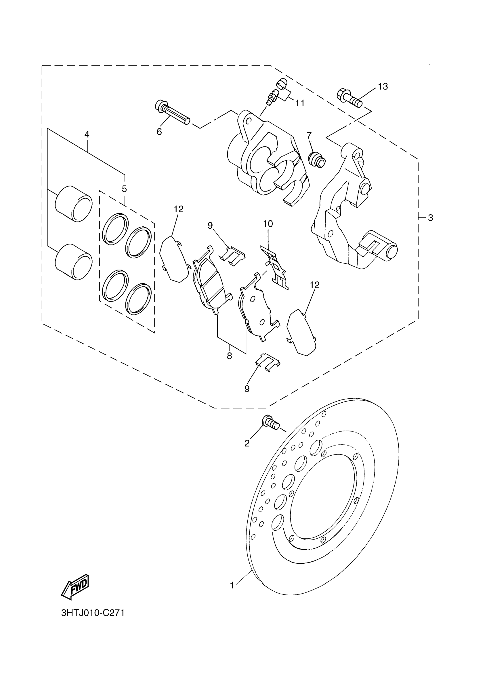 Yamaha SR400JL (SR400) 2RDG 2018 FRONT BRAKE CALIPER Diagram