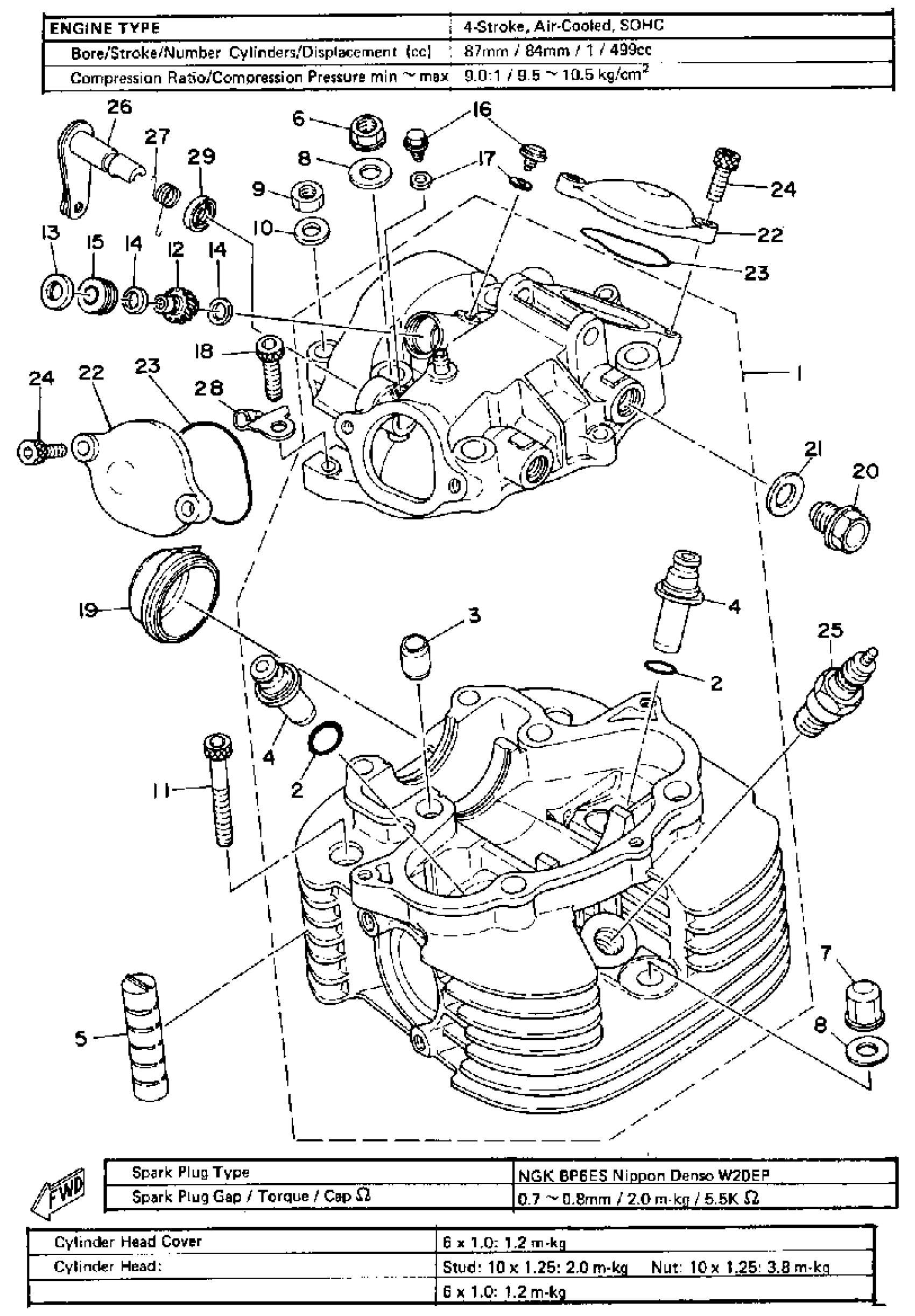 Yamaha SR500G (SR500G) 1980 CYLINDER HEAD Diagram
