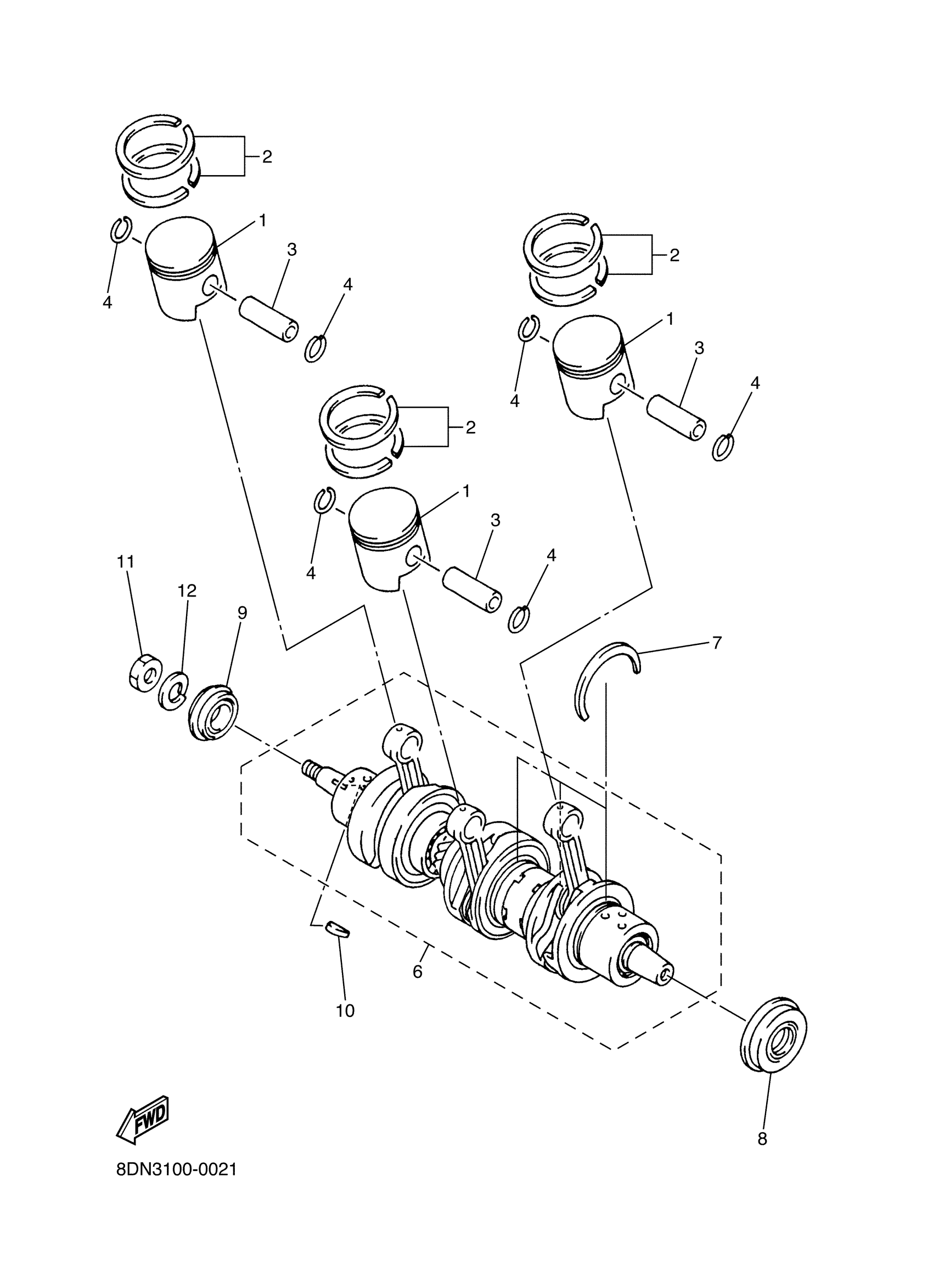 Yamaha SRX700SG (SRX700) 8DN50 2002 CRANKSHAFT PISTON Diagram
