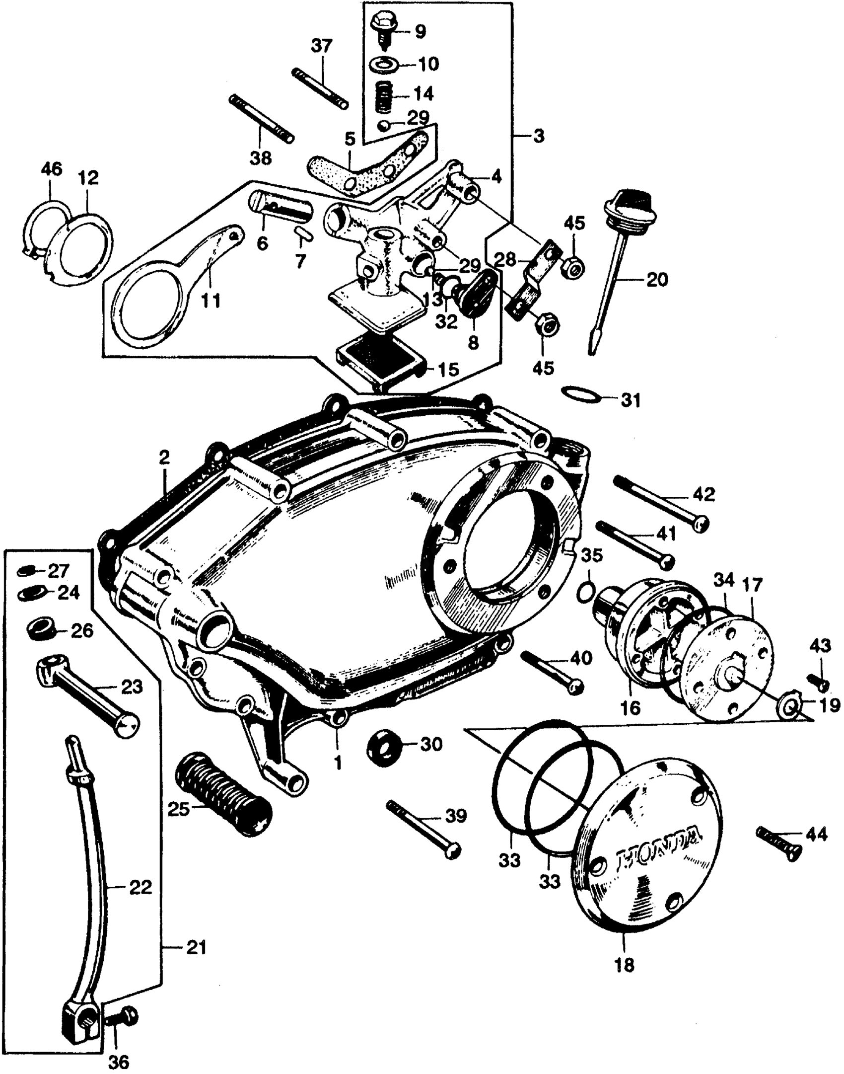Honda SS125AA MOTORCYCLE, JPN, VIN# SS125A-100001 RIGHT CRANKCASE COVER + OILPUMP Diagram
