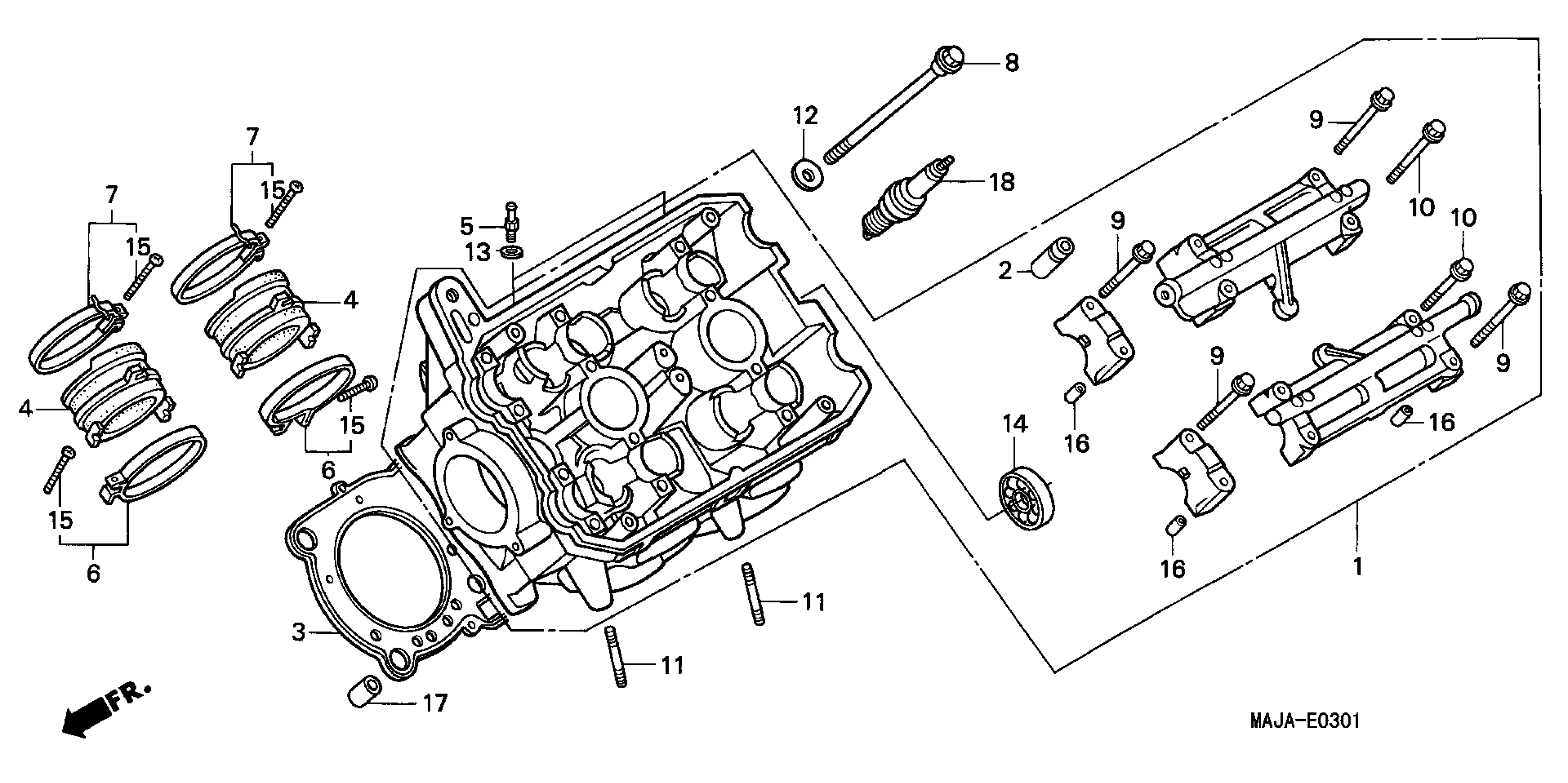 Honda ST1100A (01) MOTORCYCLE, JPN, VIN# JH2SC260-1M100001 LEFT CYLINDER HEAD Diagram