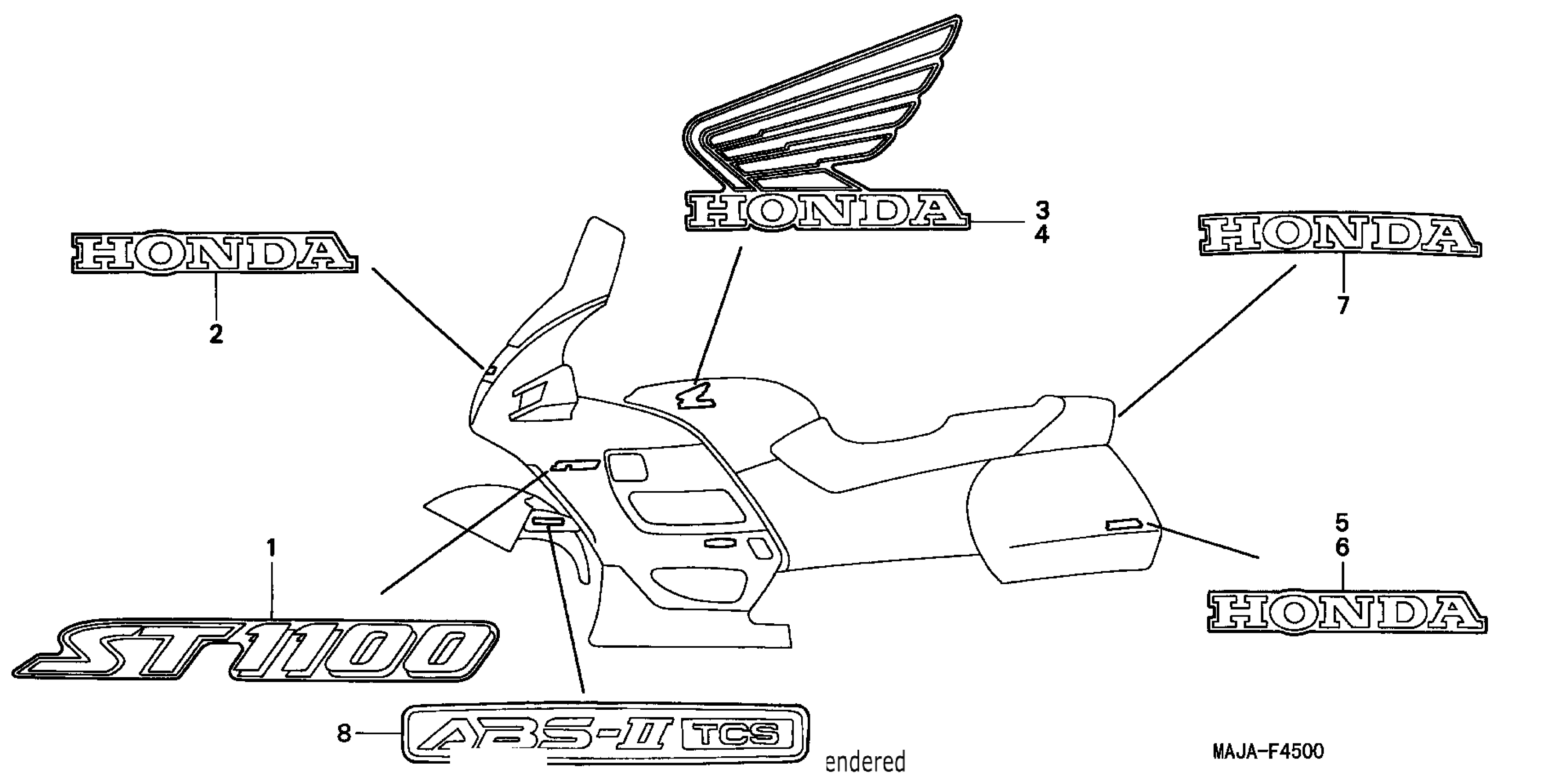 Honda ST1100A (01) MOTORCYCLE, JPN, VIN# JH2SC260-1M100001 MARKS Diagram