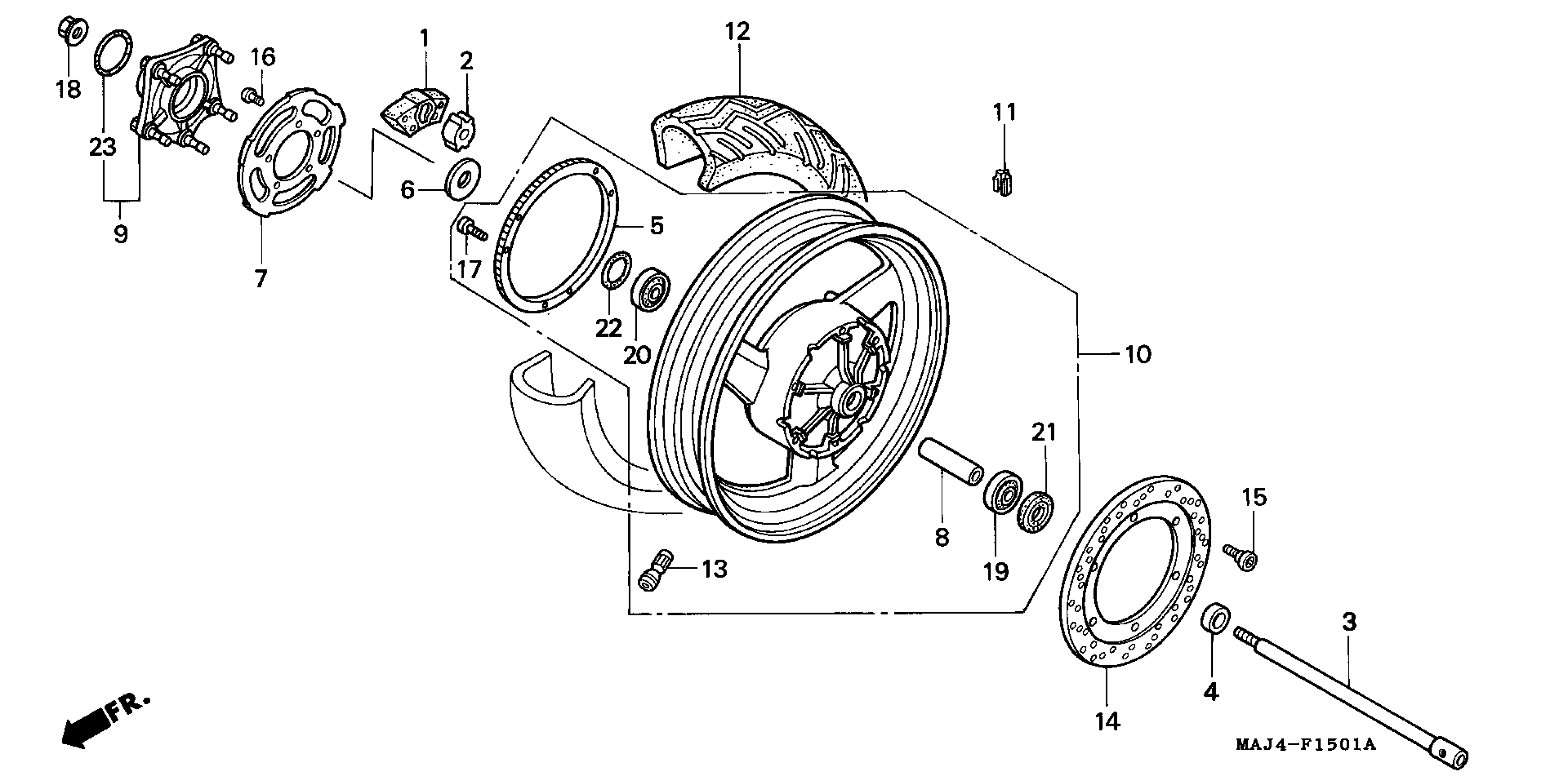 Honda ST1100AA (98) MOTORCYCLE, JPN, VIN# JH2SC263-WM400001 REAR WHEEL Diagram