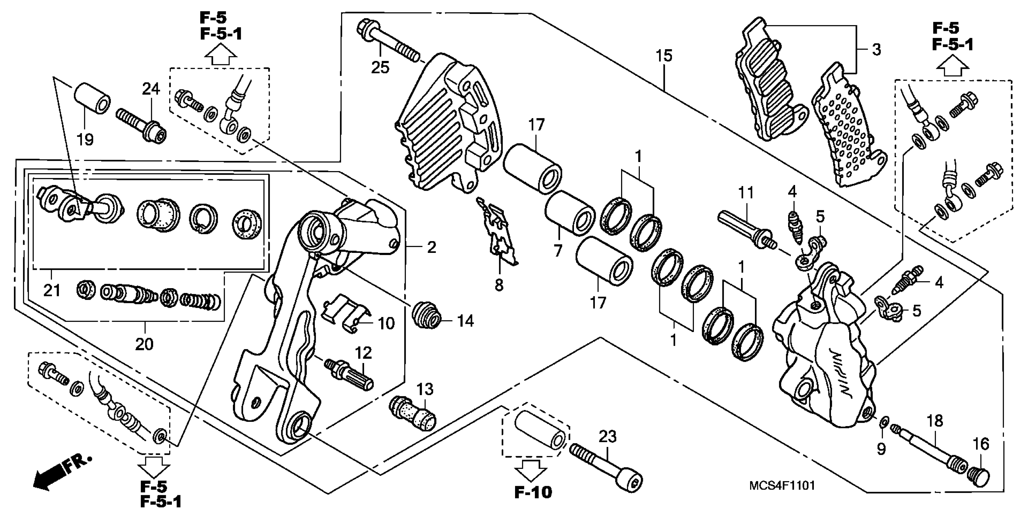 Honda ST1300A (06) ST1300, JPN, VIN# JH2SC510-6M400001 LEFT FRONT BRAKE CALIPER Diagram