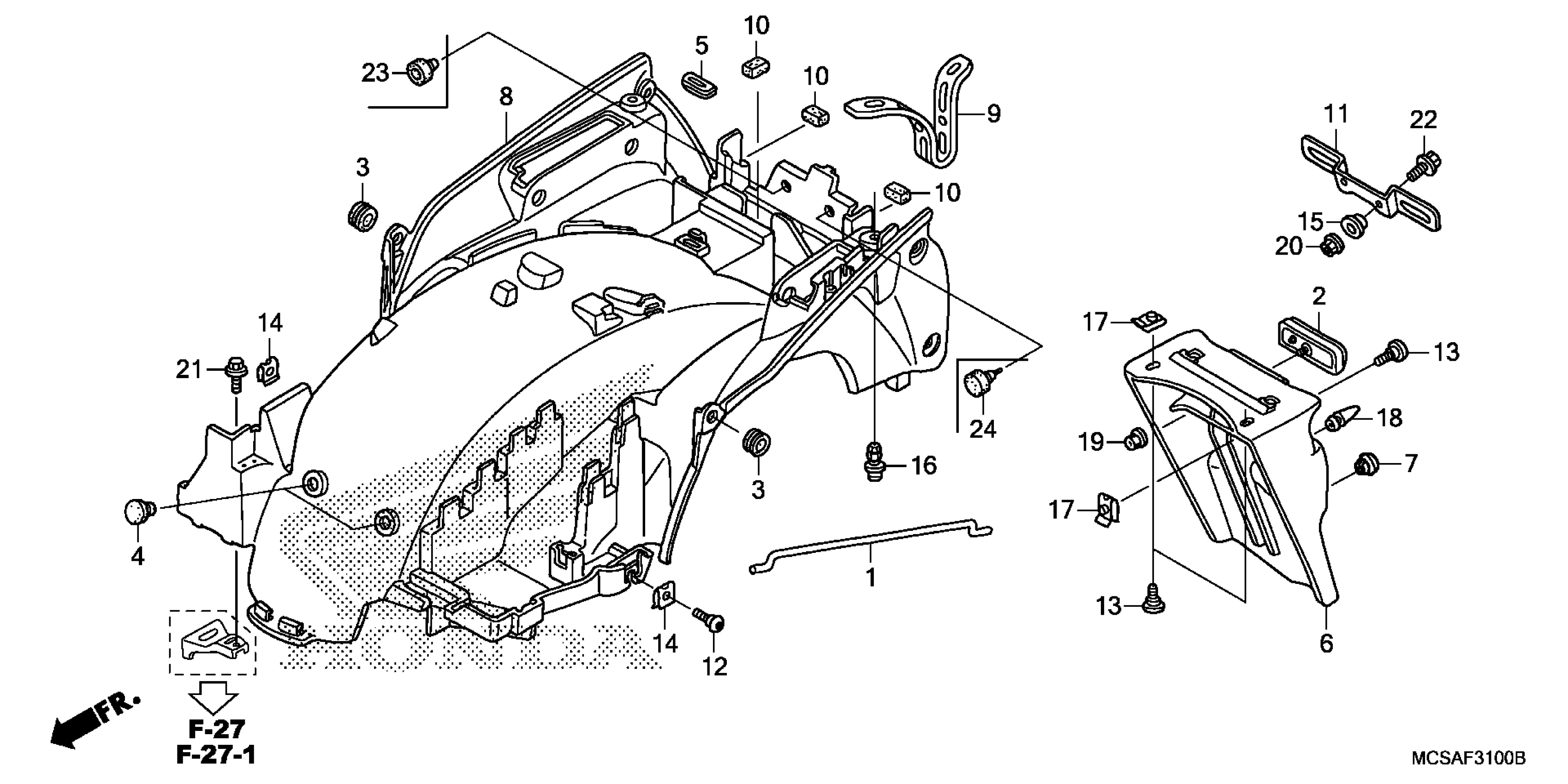 Honda ST1300A (07) MOTORCYCLE, JPN, VIN# JH2SC510-7M500001 TO JH2SC510-7M599999 REAR FENDER Diagram