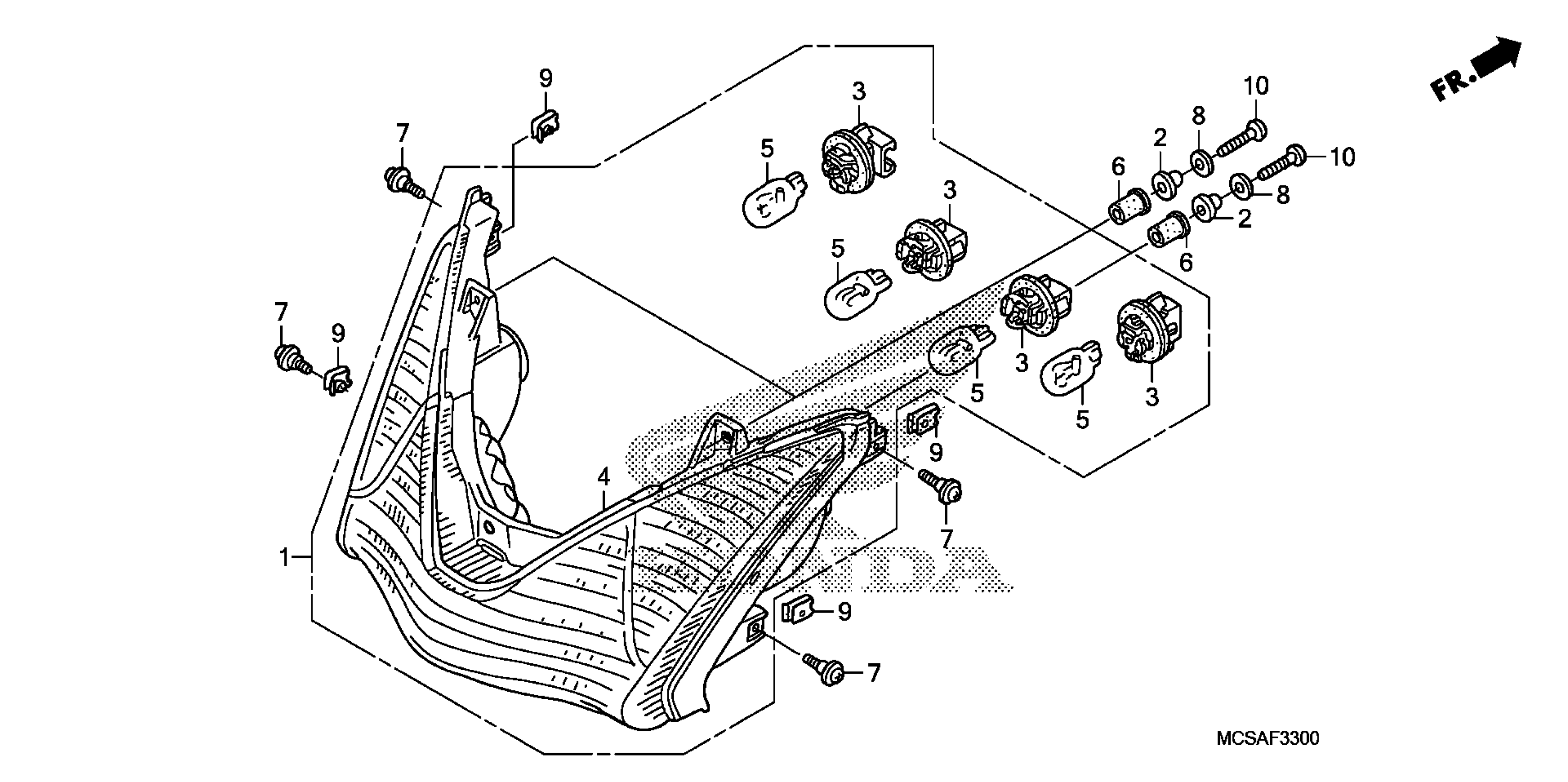 Honda ST1300A (10) MOTORCYCLE, JPN, VIN# JH2SC510-AK800001 REAR COMBINATION LIGHT Diagram