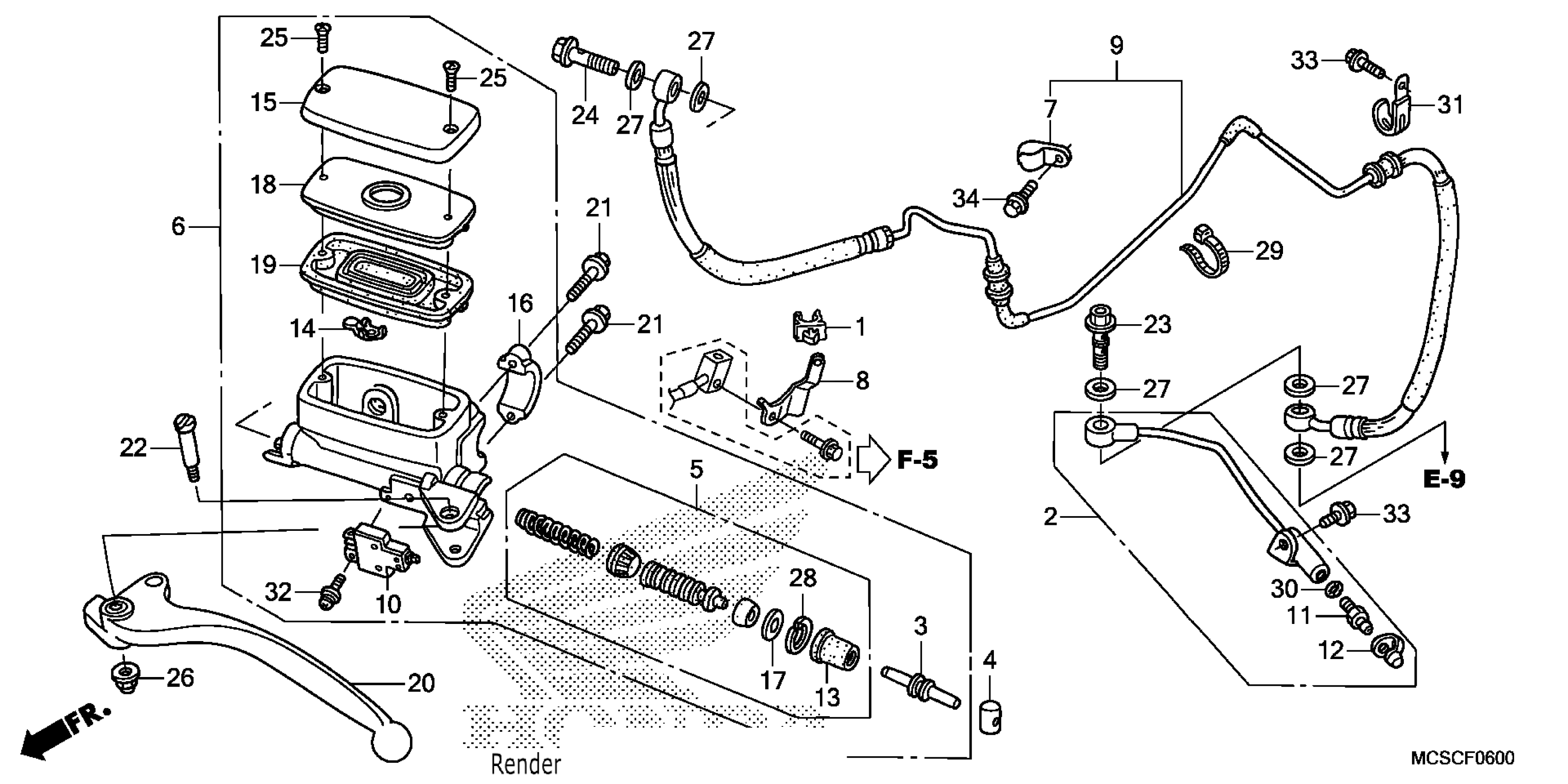 Honda ST1300AAC (13) MOTORCYCLE, JPN, VIN# JH2SC511-DK100001 CLUTCH MASTER CYLINDER Diagram