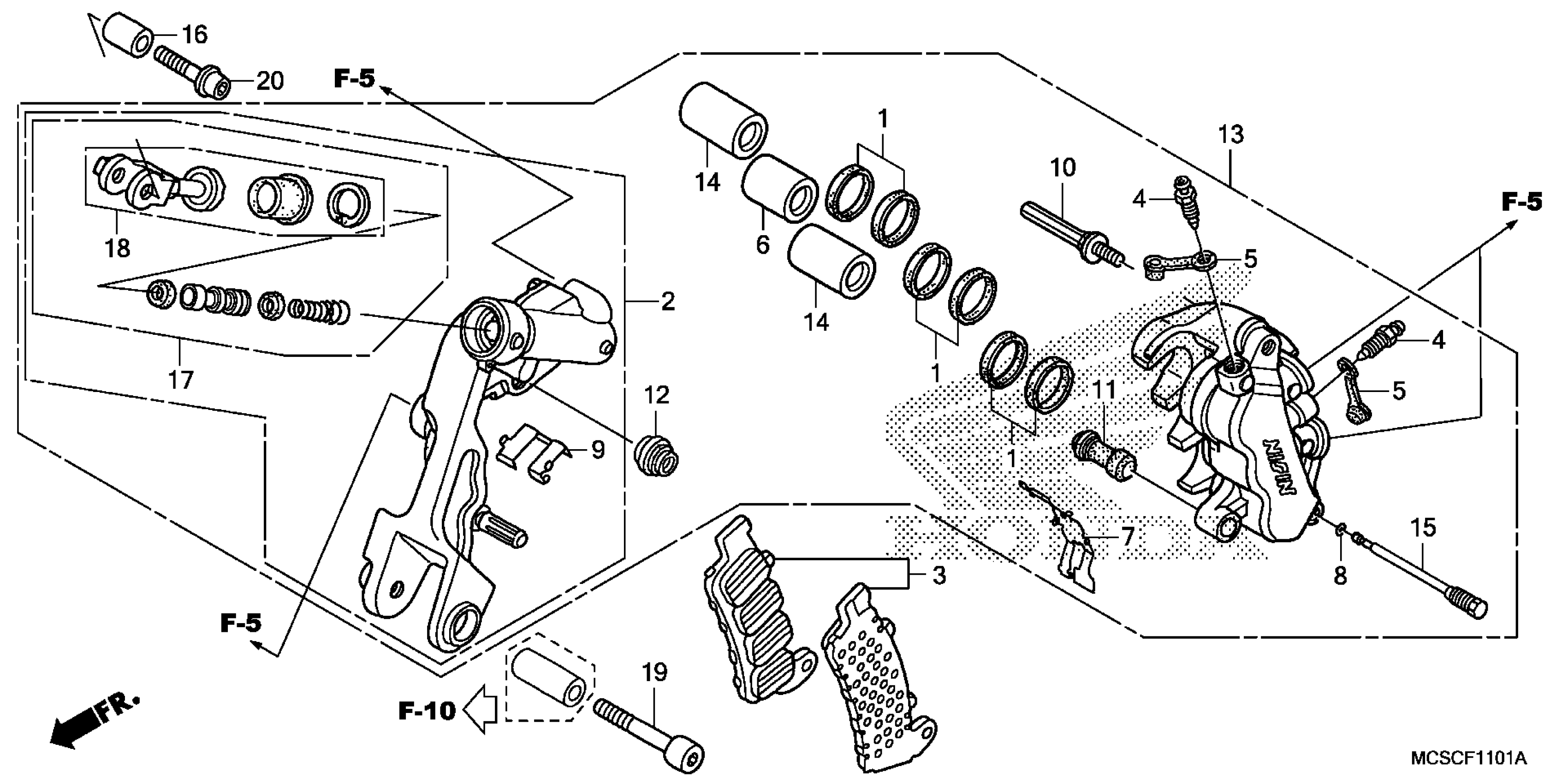 Honda ST1300AAC (13) MOTORCYCLE, JPN, VIN# JH2SC511-DK100001 LEFT FRONT BRAKE CALIPER Diagram