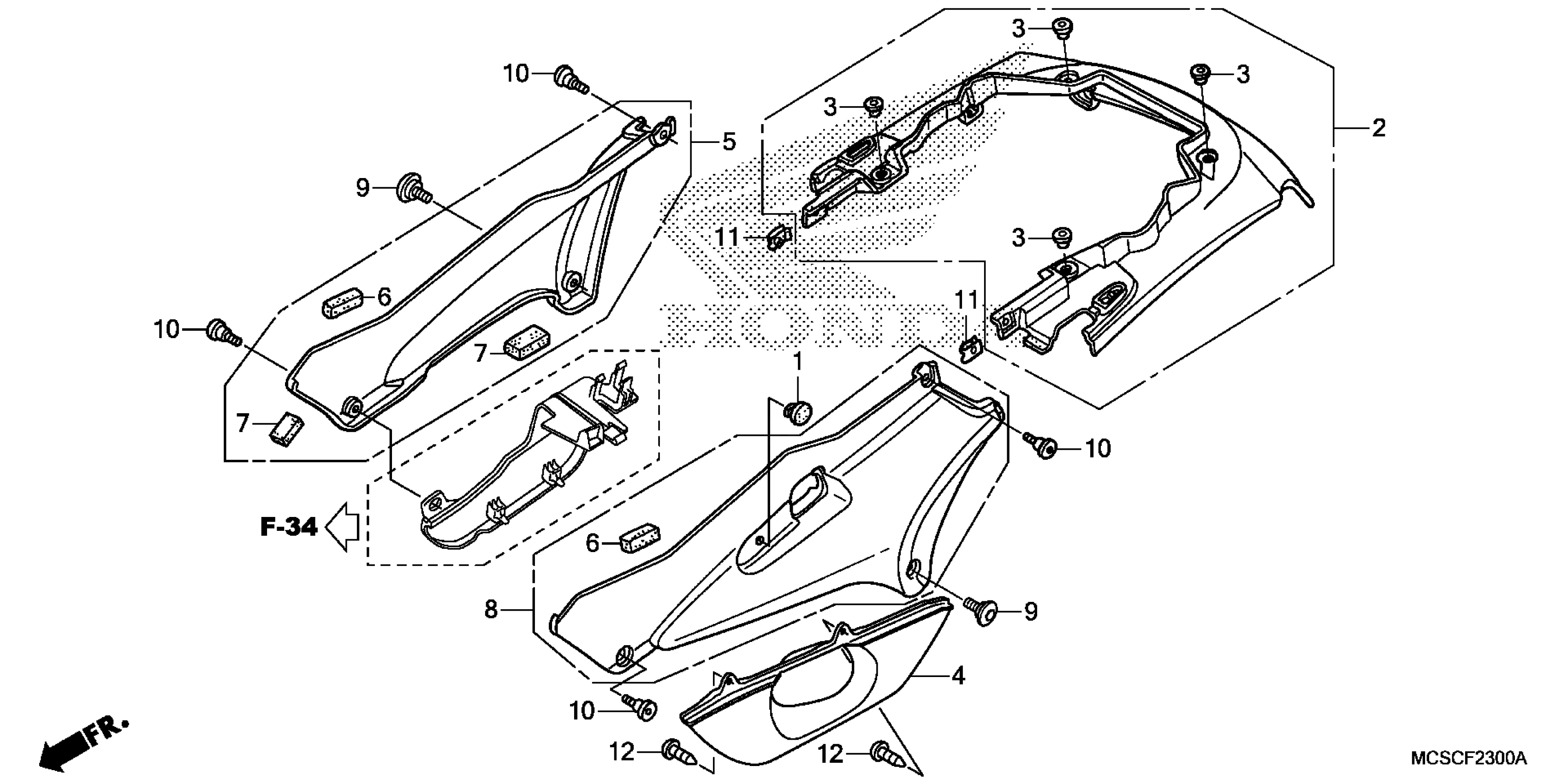 Honda ST1300AAC (13) MOTORCYCLE, JPN, VIN# JH2SC511-DK100001 SIDE COVER + REAR COWL Diagram