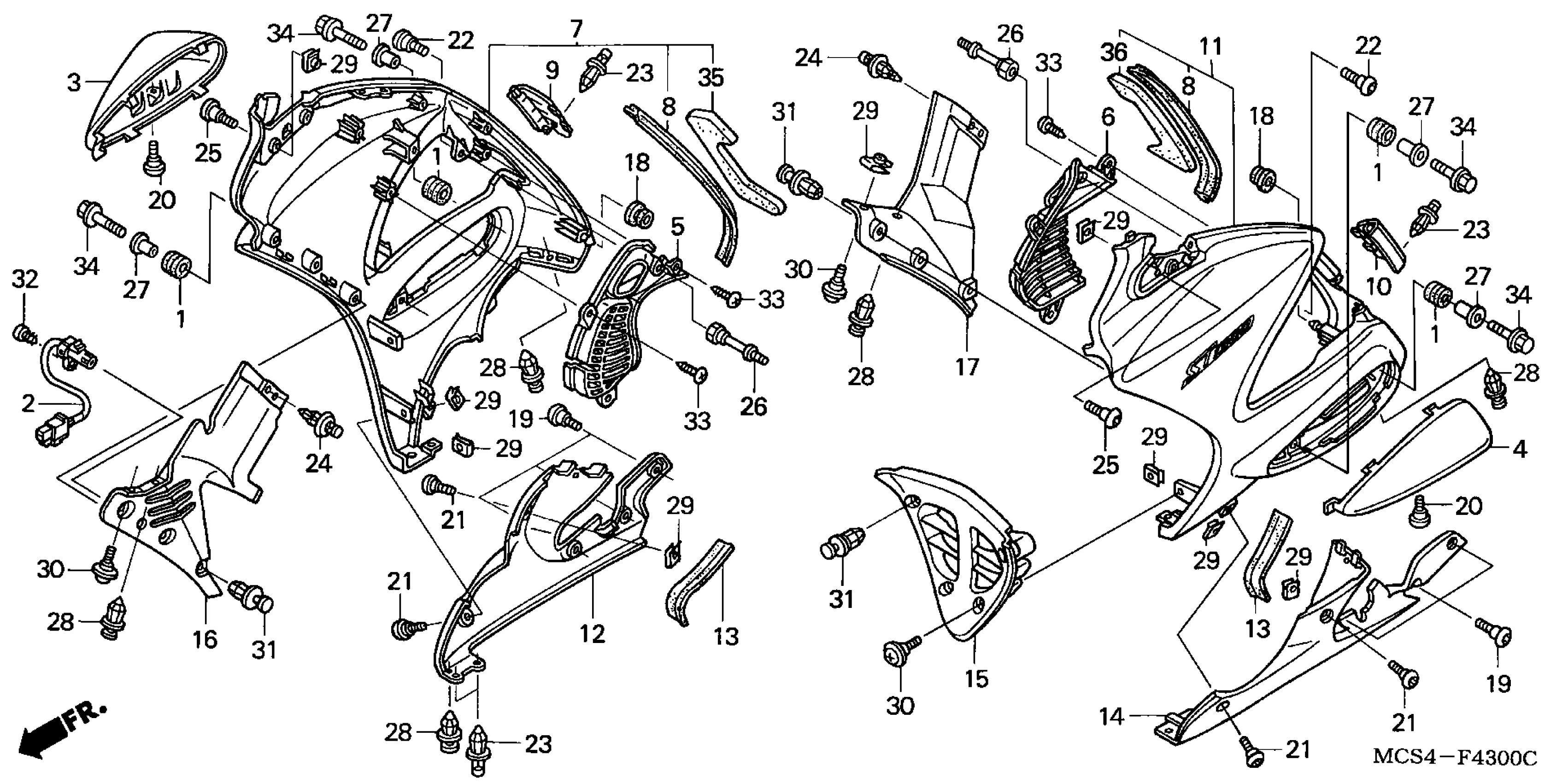 Honda ST1300AC (03) ST1300, JPN, VIN# JH2SC511-3M100001 TO JH2SC511-3M199999 LOWER COWL Diagram