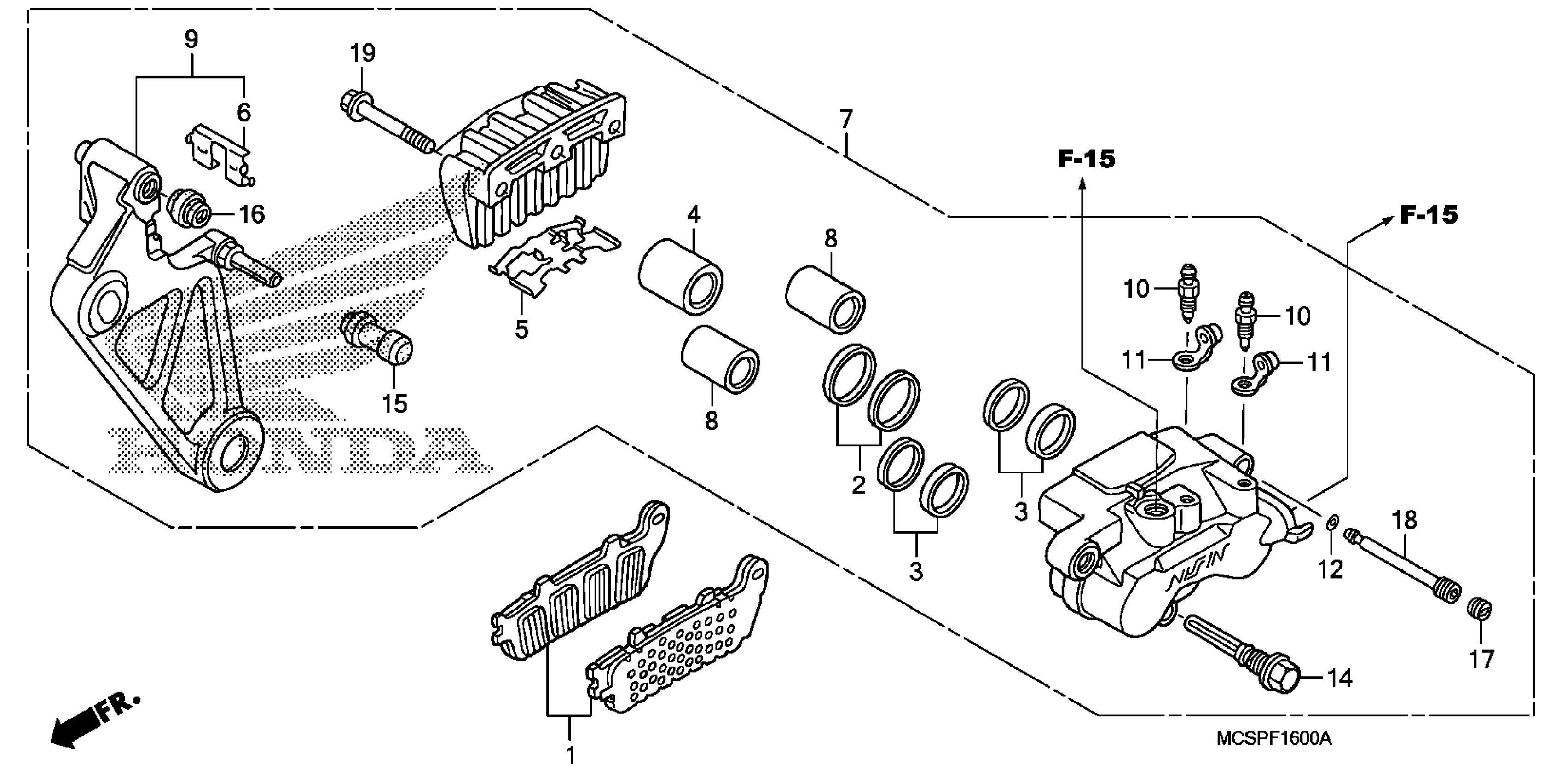 Honda ST1300PAA (09) ST1300PA, JPN, VIN# JH2SC517-9K600001 TO JH2SC517-9K600176 REAR BRAKE CALIPER Diagram