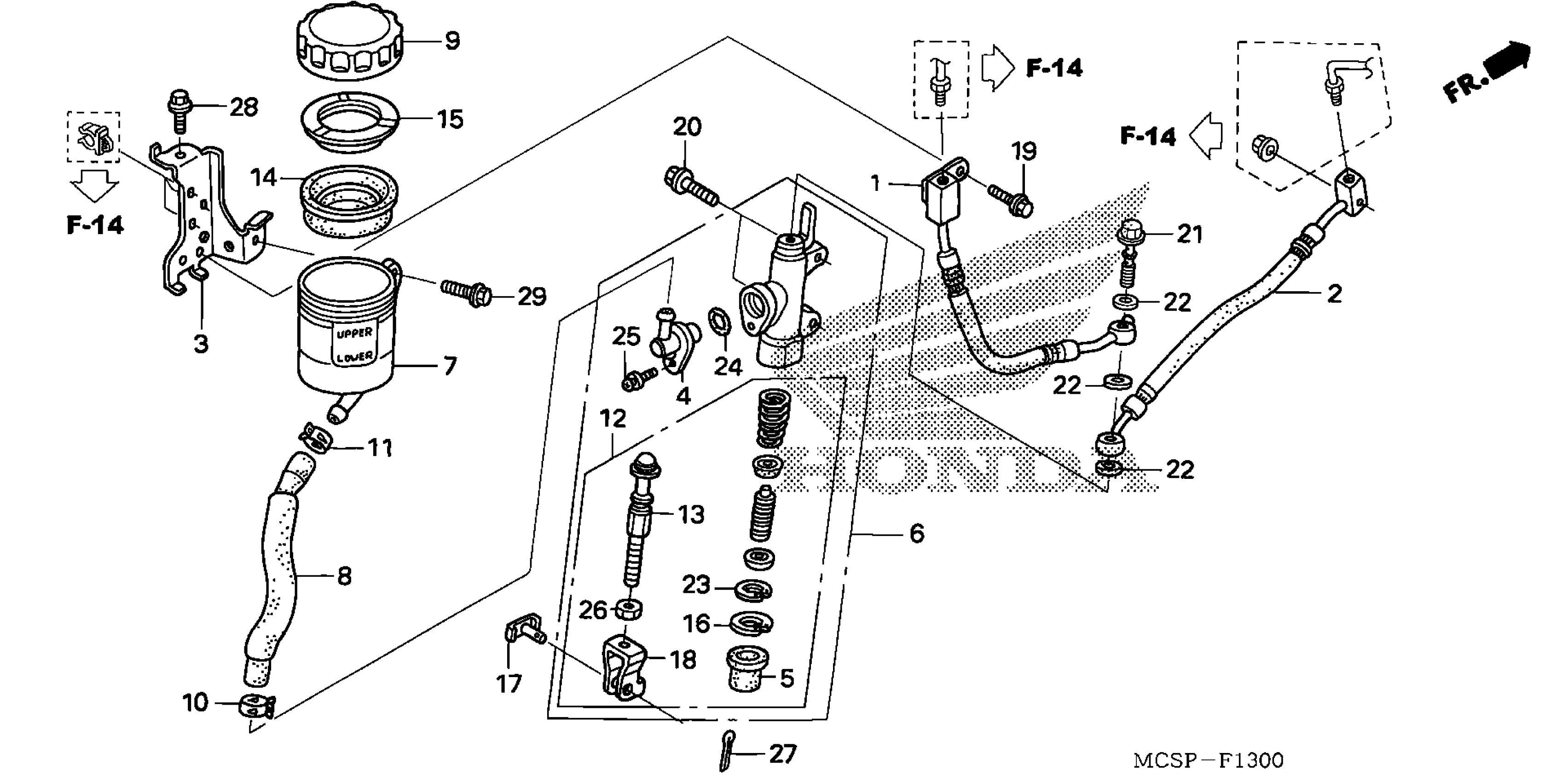 Honda ST1300PAA (09) ST1300PA, JPN, VIN# JH2SC517-9K600001 TO JH2SC517-9K600176 REAR BRAKE MASTER CYLINDER Diagram