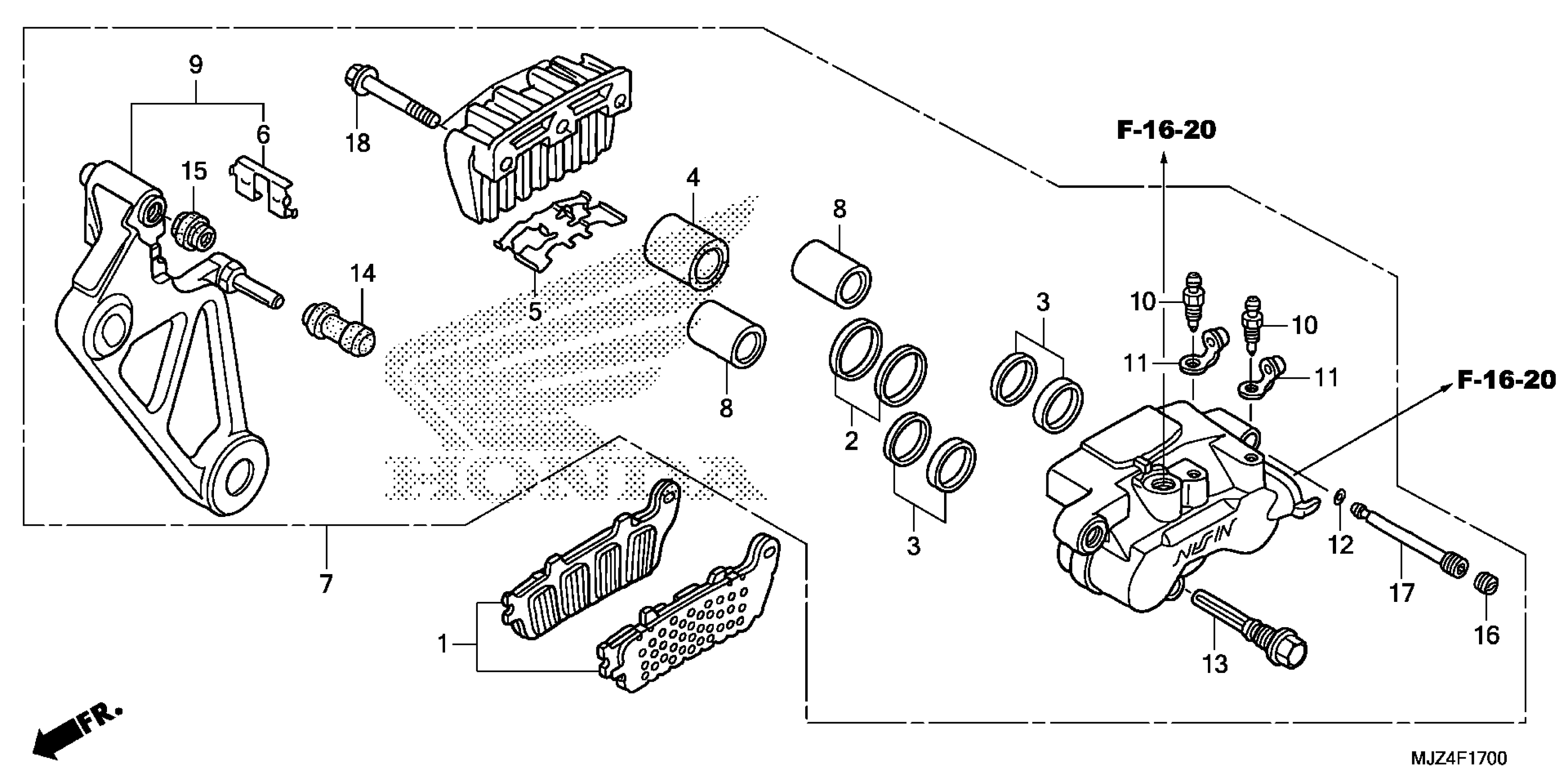 Honda ST1300PAAC (16) MOTORCYCLE, JPN, VIN# JH2SC515-GK400001 TO JH2SC515-GK499999 REAR BRAKE CALIPER Diagram