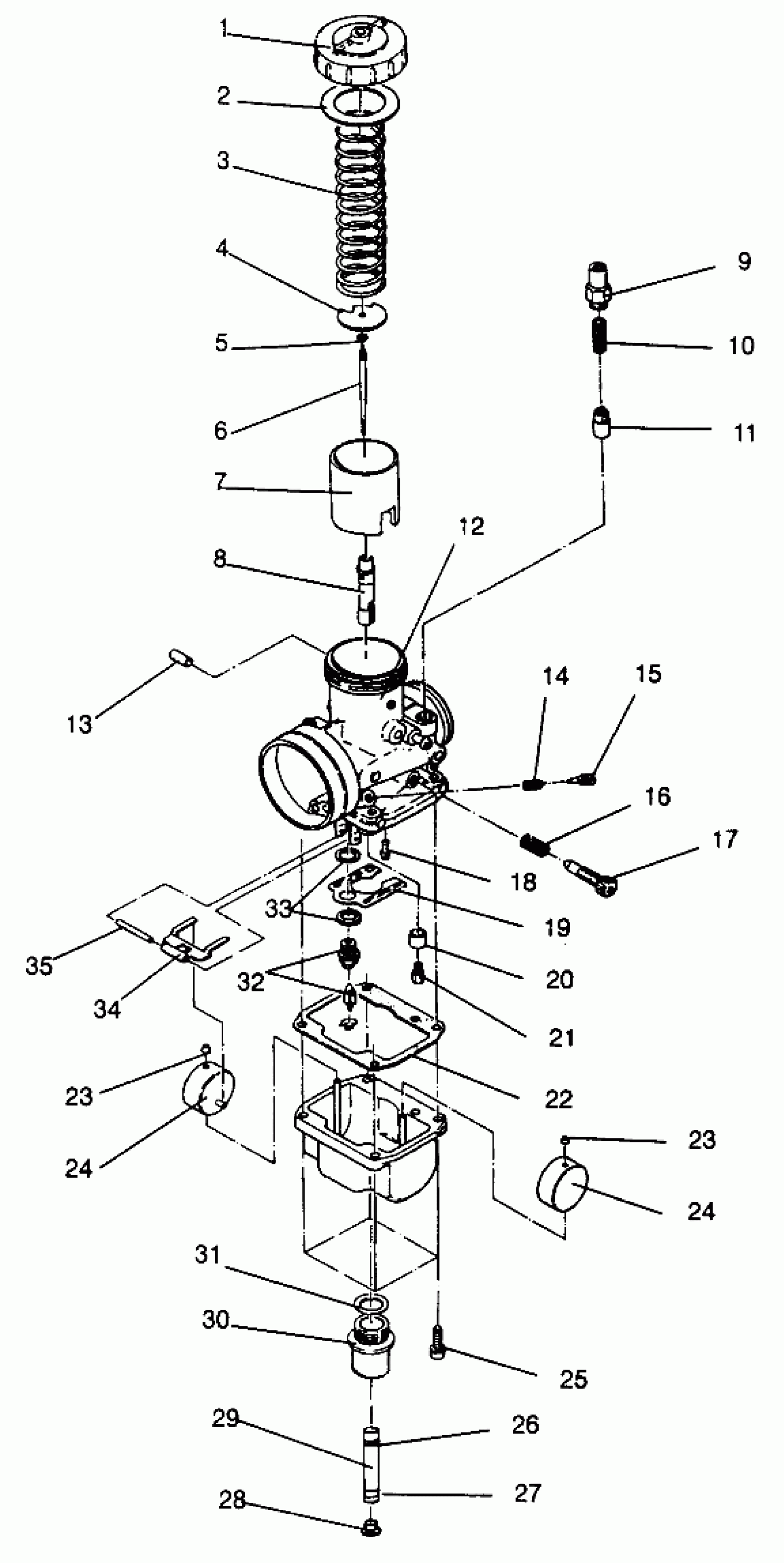 CARBURETOR #2 (Incl. 1-25, 30-35) (Storm, SKS) (Center, PTO Side)