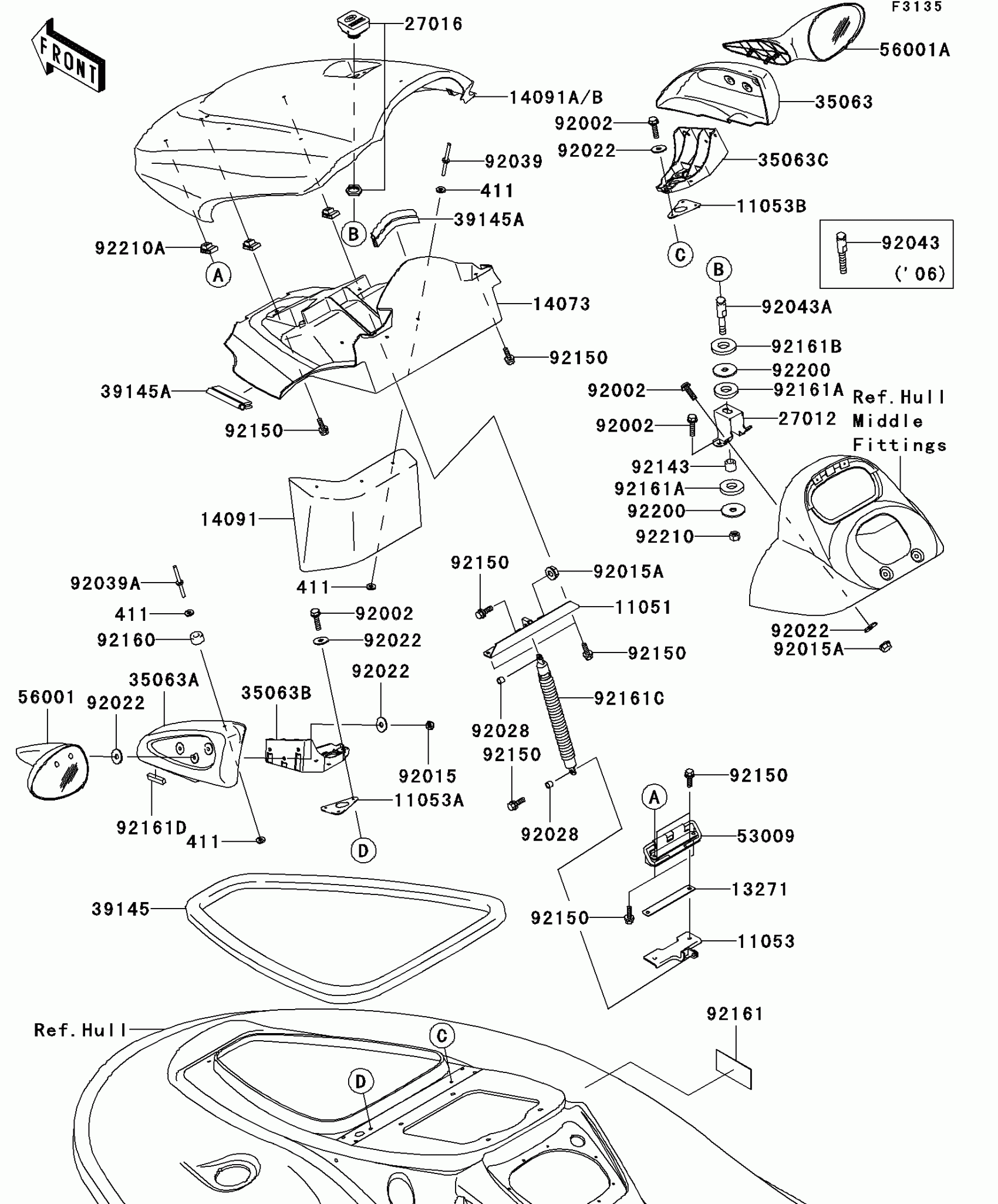 Kawasaki STX-12F Hull Front Fittings Diagram