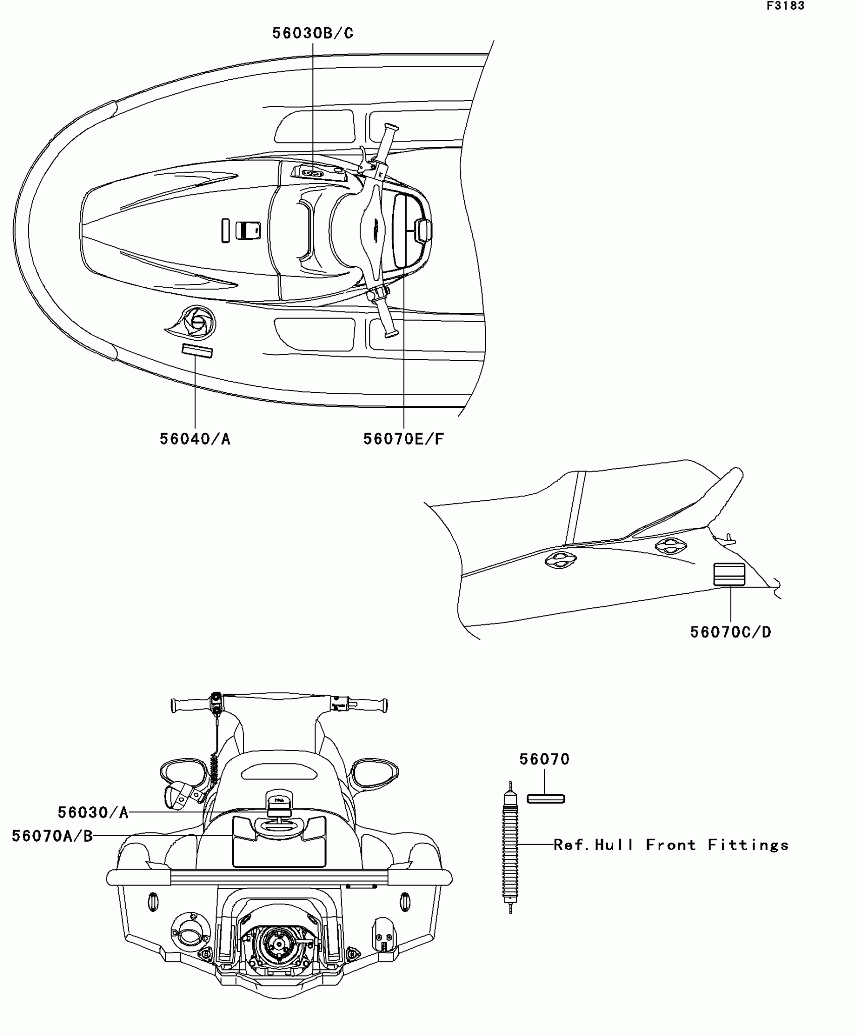 Kawasaki STX-12F Labels Diagram