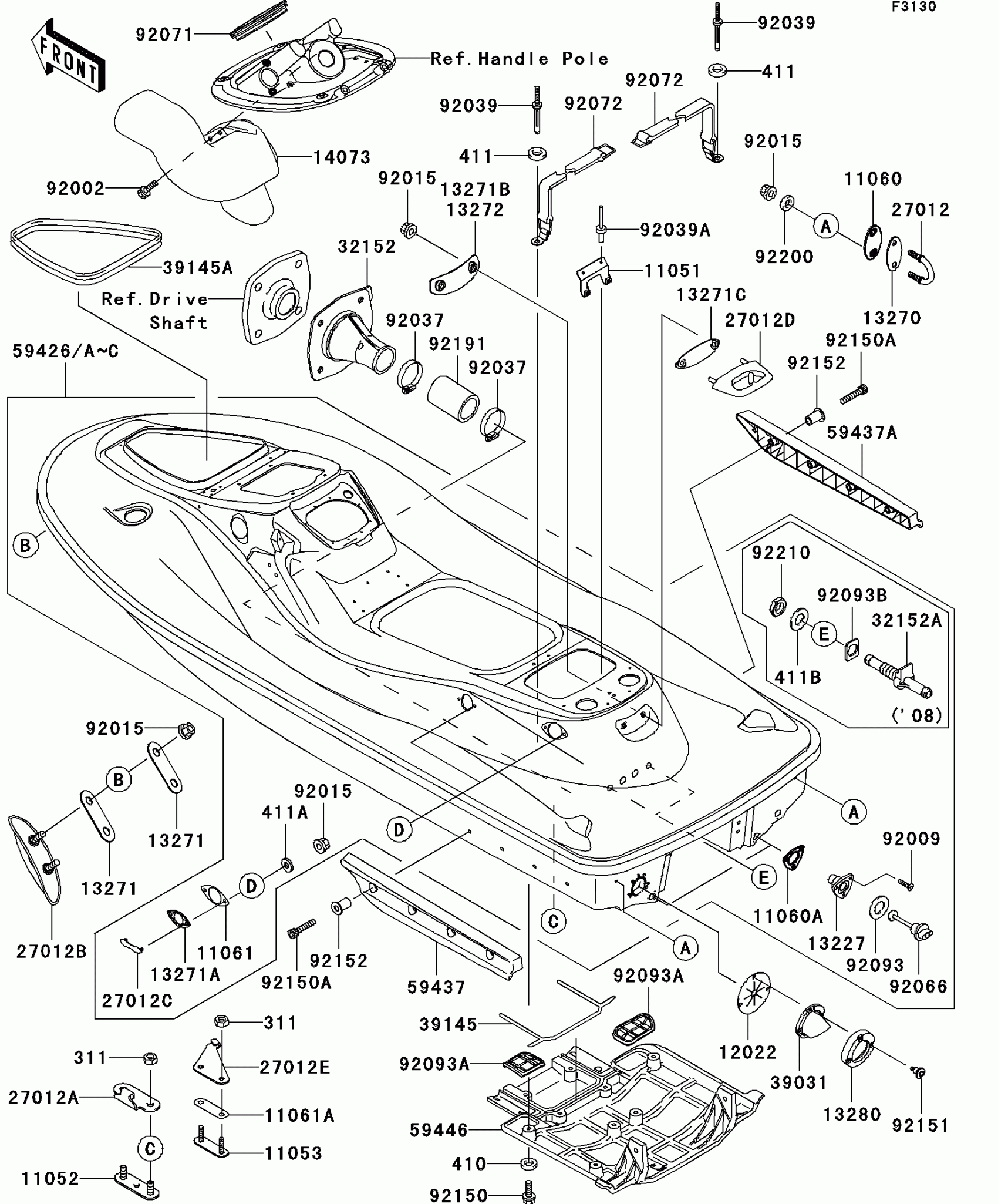 Kawasaki STX-15F Hull(A6F-A8F) Diagram