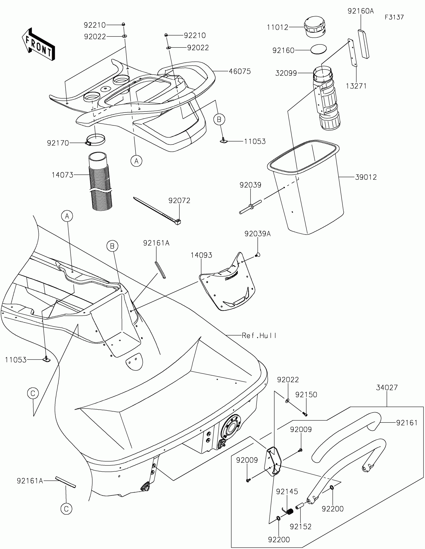 Kawasaki STX 160X Hull Rear Fittings Diagram